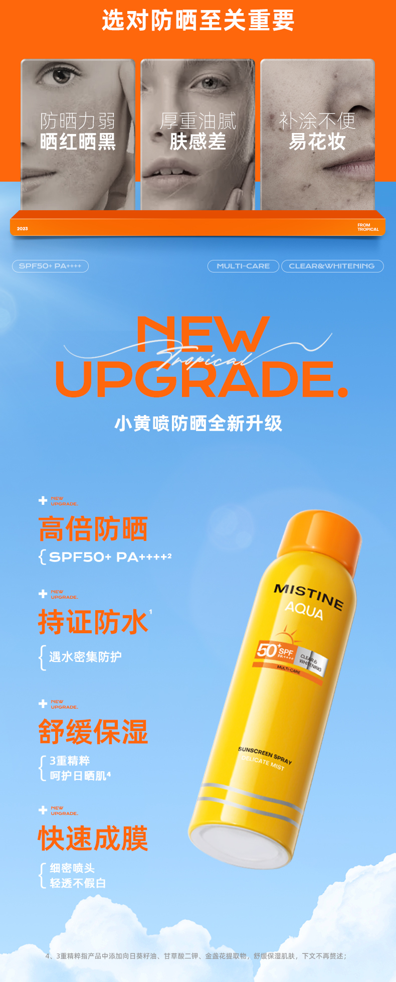蜜丝婷(Mistine) SPF50+PA+++ 100ml 水感轻透莹白防晒喷雾 黄色(单位:瓶)