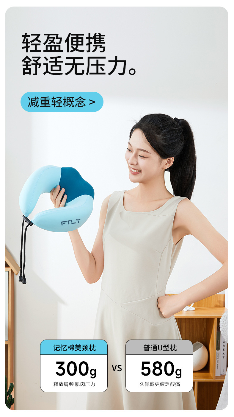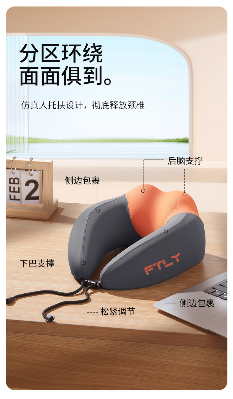 飞图乐(FTLY) UXZ0802 350g 轻量商旅U型枕 落日橙(单位:套)