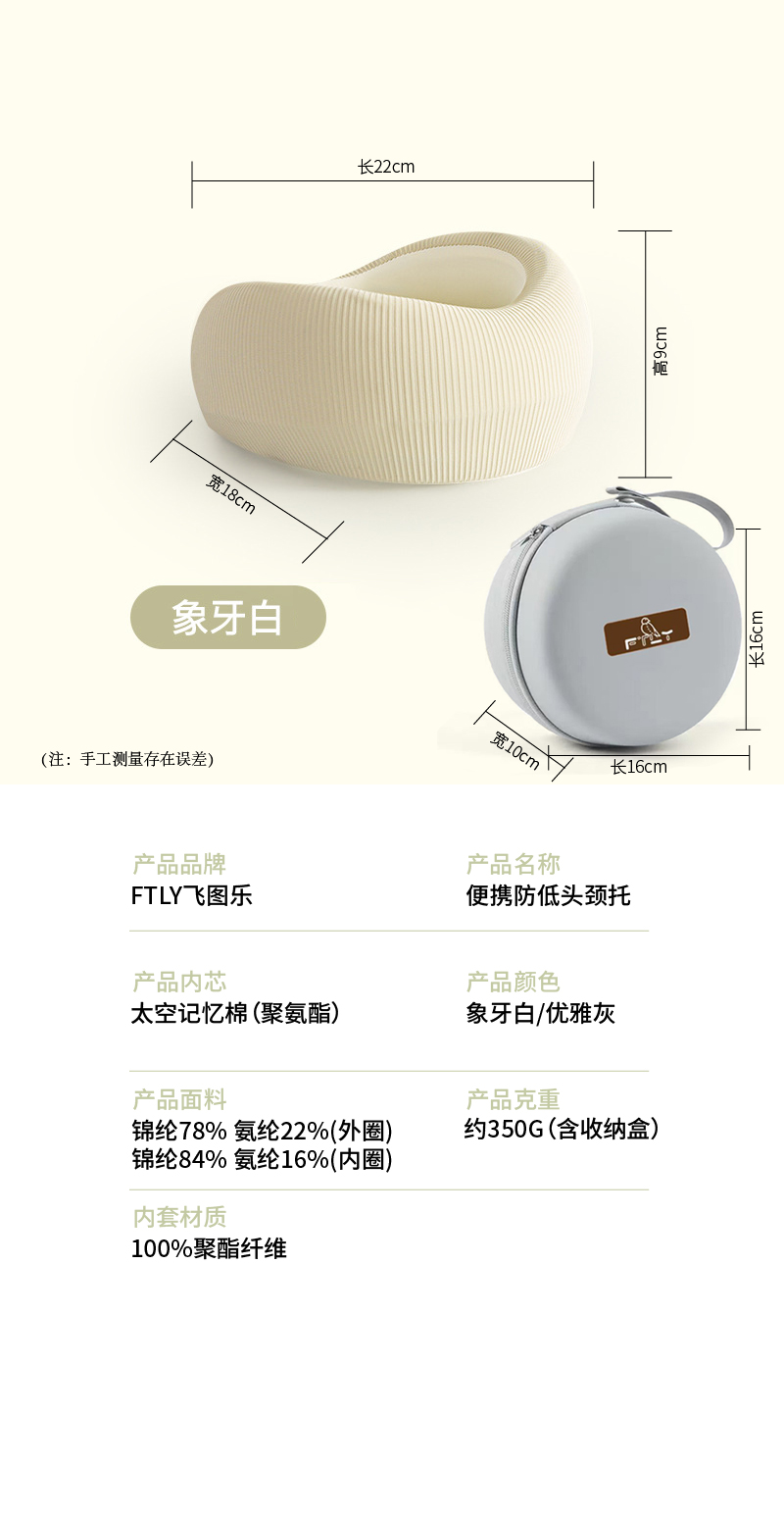 飞图乐(FTLY) JT0102 350g 便携防低头颈托 优雅灰(单位:个)