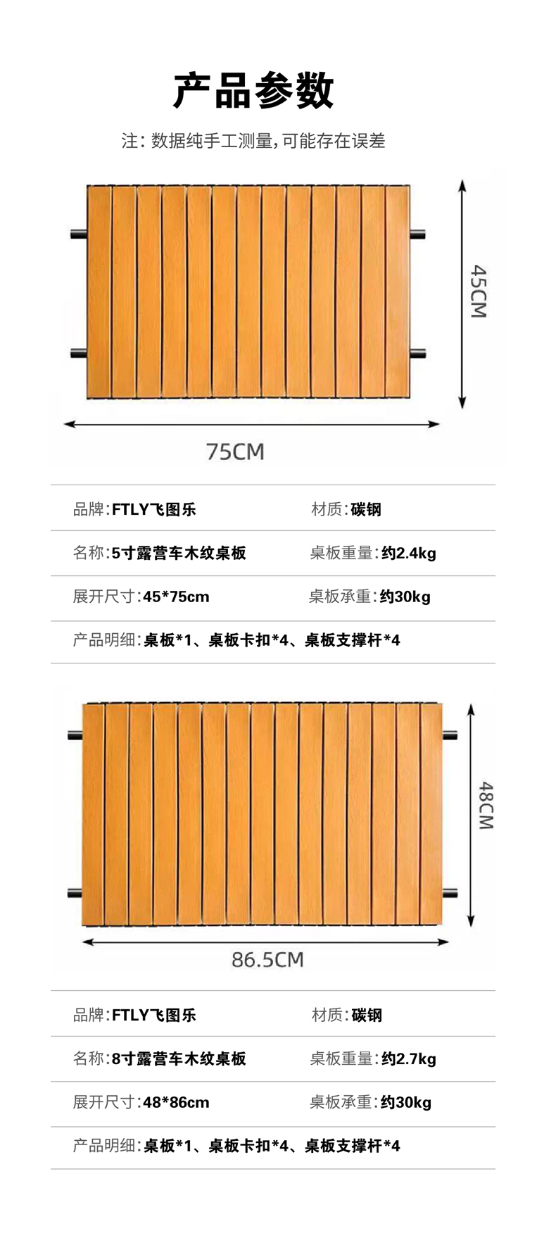 飞图乐(FTLY) ZB00 75*45cm 木纹露营车桌板5寸 原木色(单位:个)