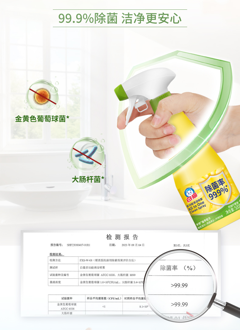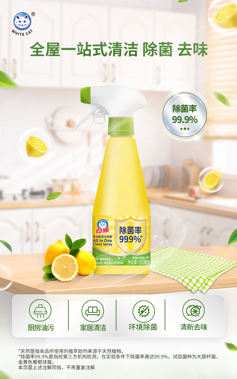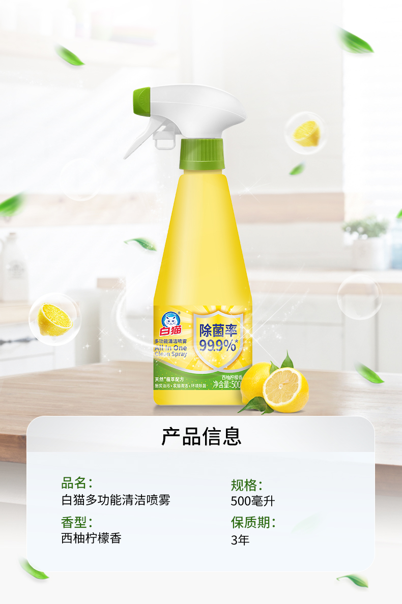 白猫 C35100200 500ml 多功能清洁喷雾 黄色(单位:瓶)