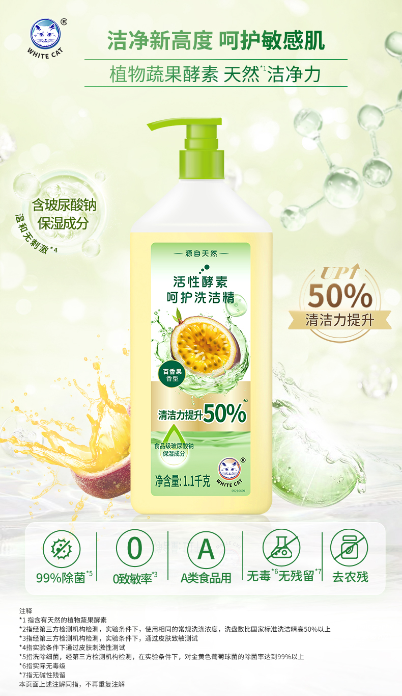 白猫 C11114205 1.1kg 活性酵素呵护洗洁精 浅杉绿(单位:瓶)
