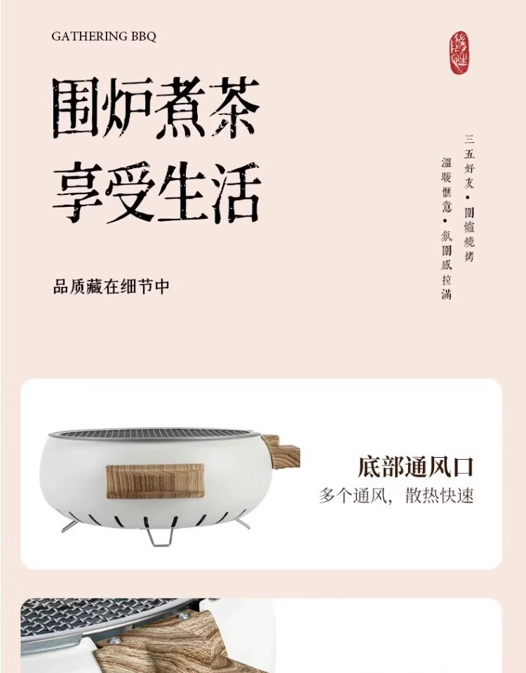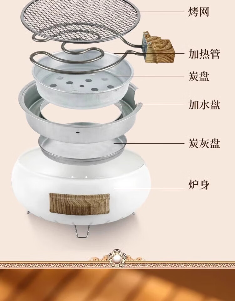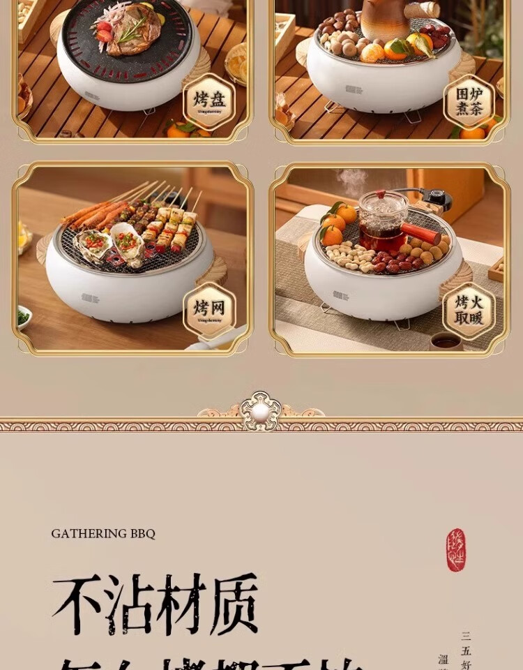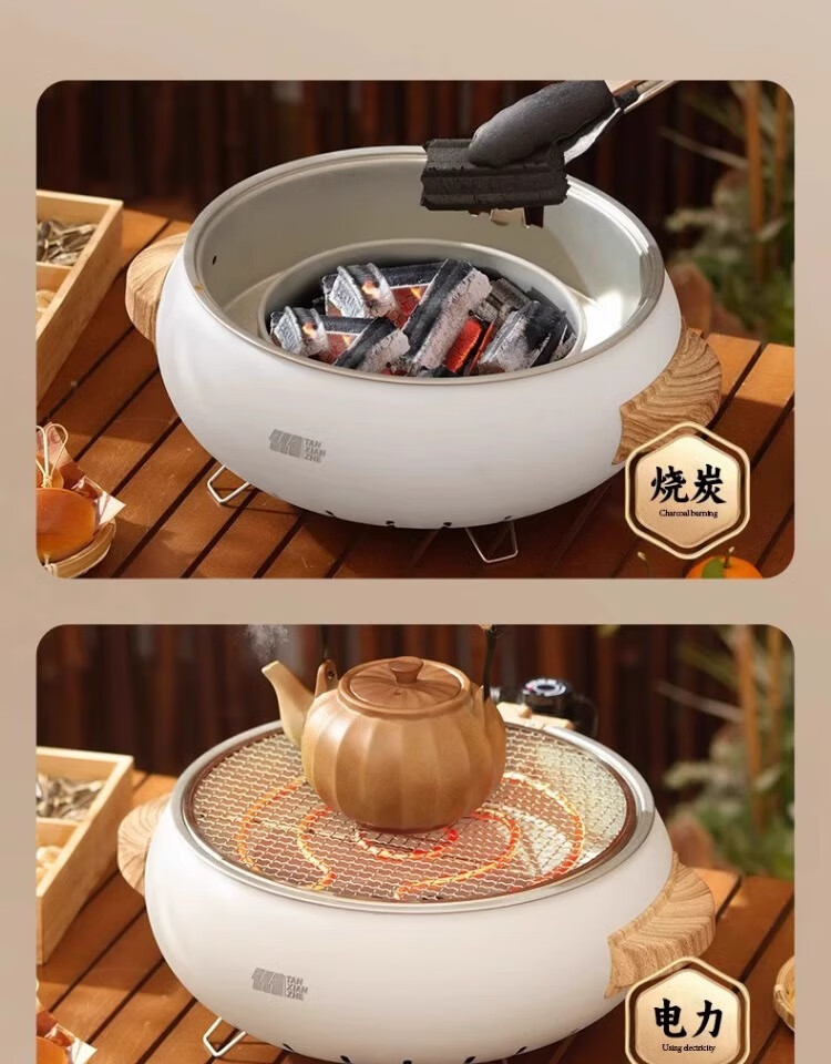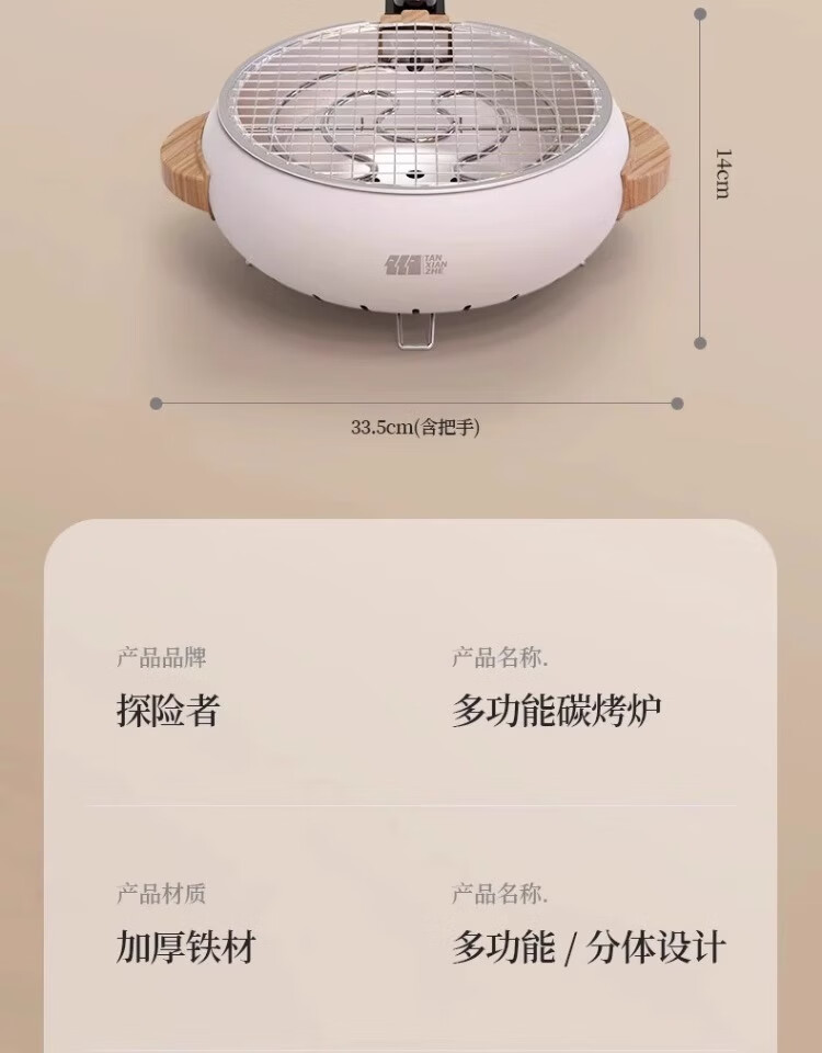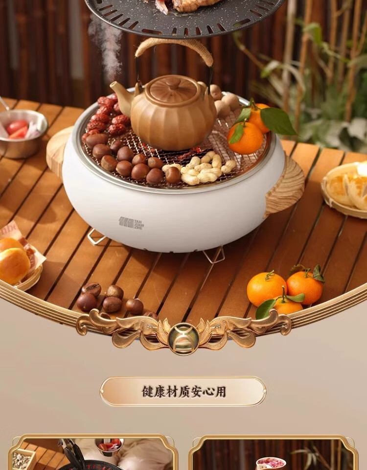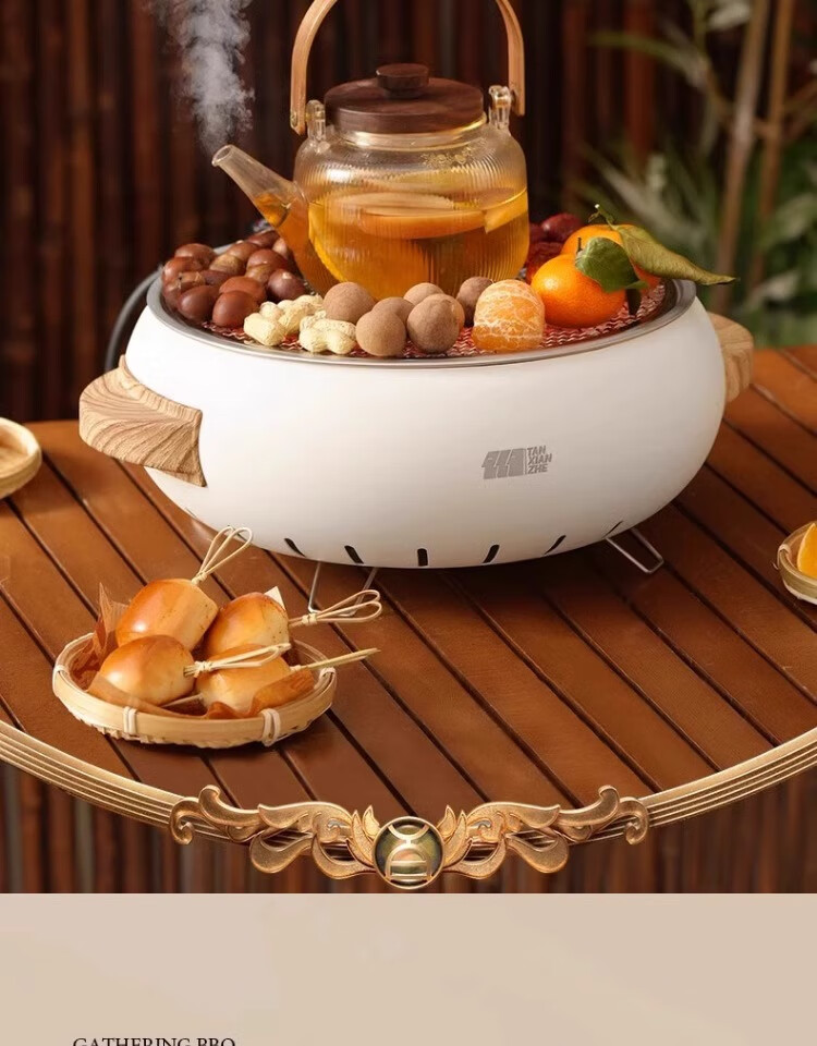 探险者(TAN XIAN ZHE) 围炉煮茶 电碳两用炉+烤网+煎盘 电陶炉围炉煮茶套装 白色(单位:台)