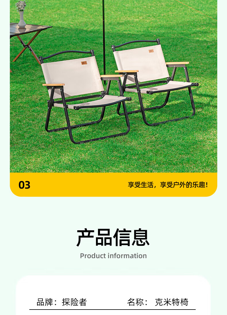 探险者(TAN XIAN ZHE) TXZ-1515 40*54.5*59.5 户外折叠椅克米特椅 卡其色(单位:张)