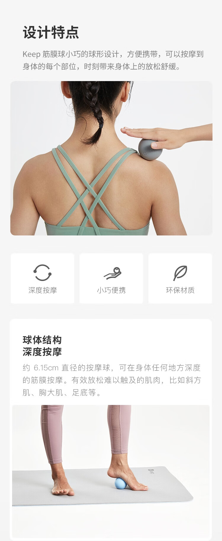 keep 筋膜球 直径约 6.15cm 瑜伽按摩健身 灰色(单位:个)