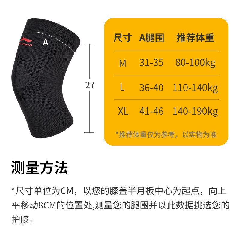 李宁(LI-NING) 904 M码 膝盖关节 运动护膝 黑色(单位:只)
