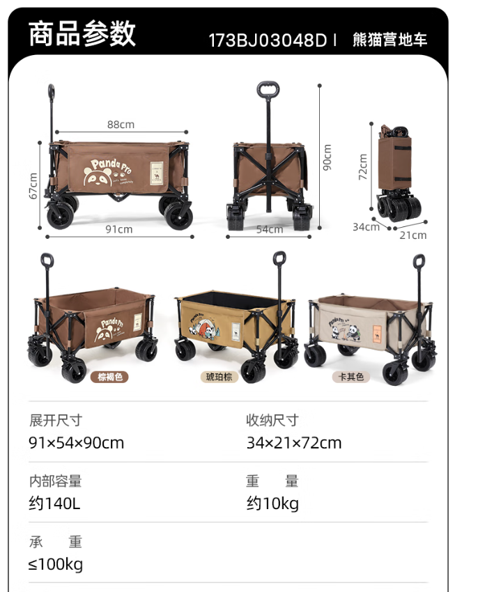 骆驼(CAMEL) 173BJ03048D 容量约140L 户外大容量宽轮营地车 黑色(单位:辆)