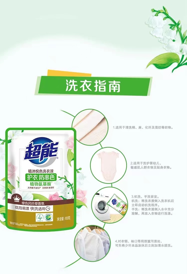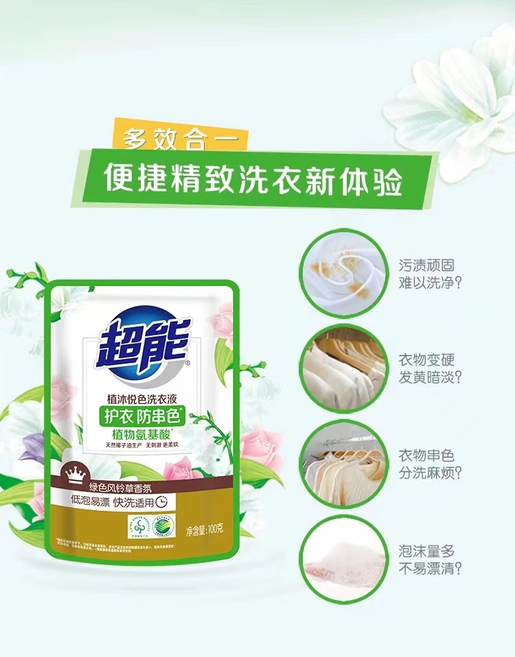 超能 植沐悦色洗衣液 100g*4袋 持久留香 混色(单位:组)