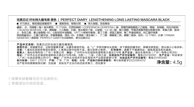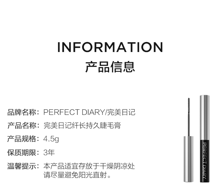 完美日记(PERFECT DIARY) 睫毛膏 4.5g 纤长持久 黑色(单位:支)