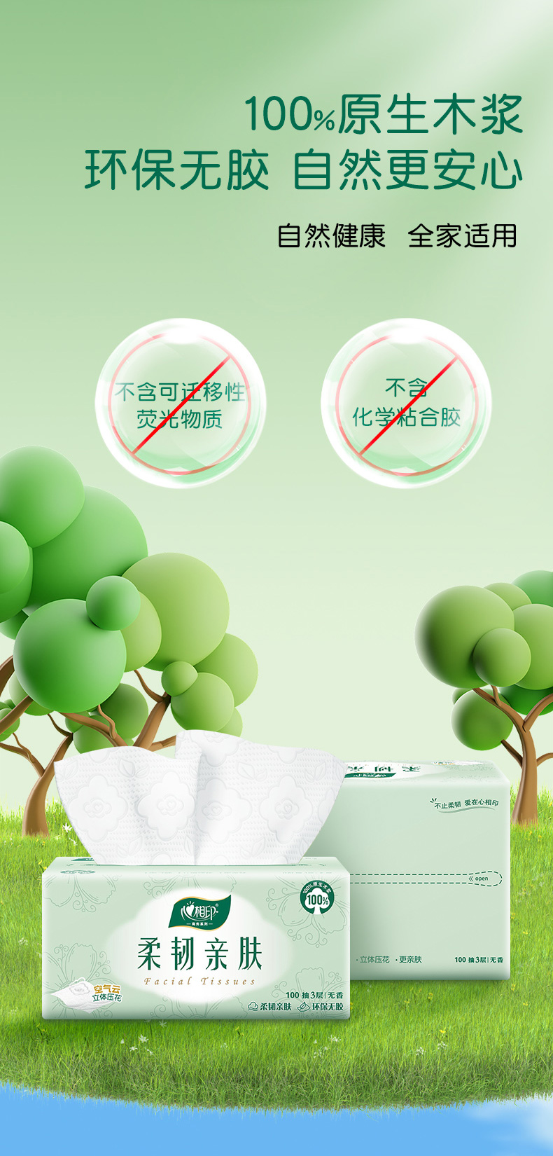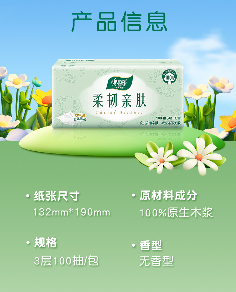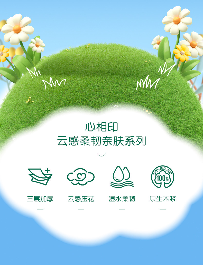心相印(Mind Act Upon Mind) DT100 6包*3提/18包 柔韧亲肤三层抽纸 白色(单位:箱)