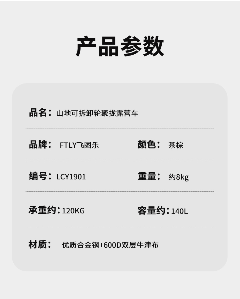 飞图乐(FTLY) LYC1901 140L 9寸可拆卸轮露营车 茶棕(单位:辆)