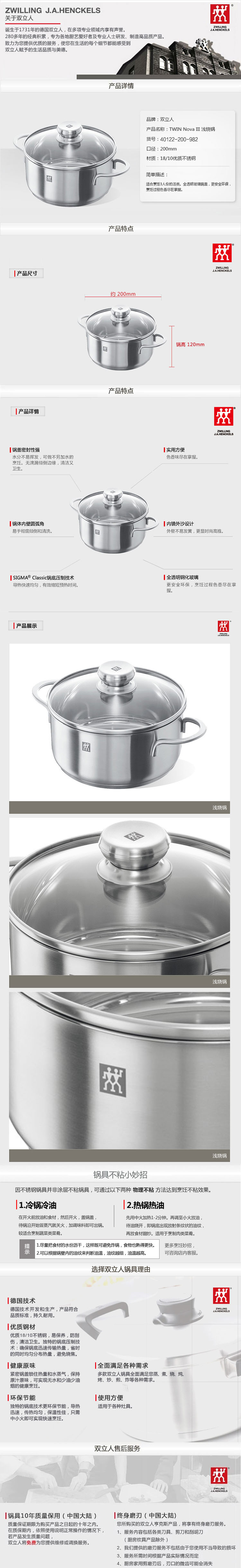 双立人TWIN Nova Ⅲ cm浅汤锅40122-200-982 不锈钢色 不锈钢色