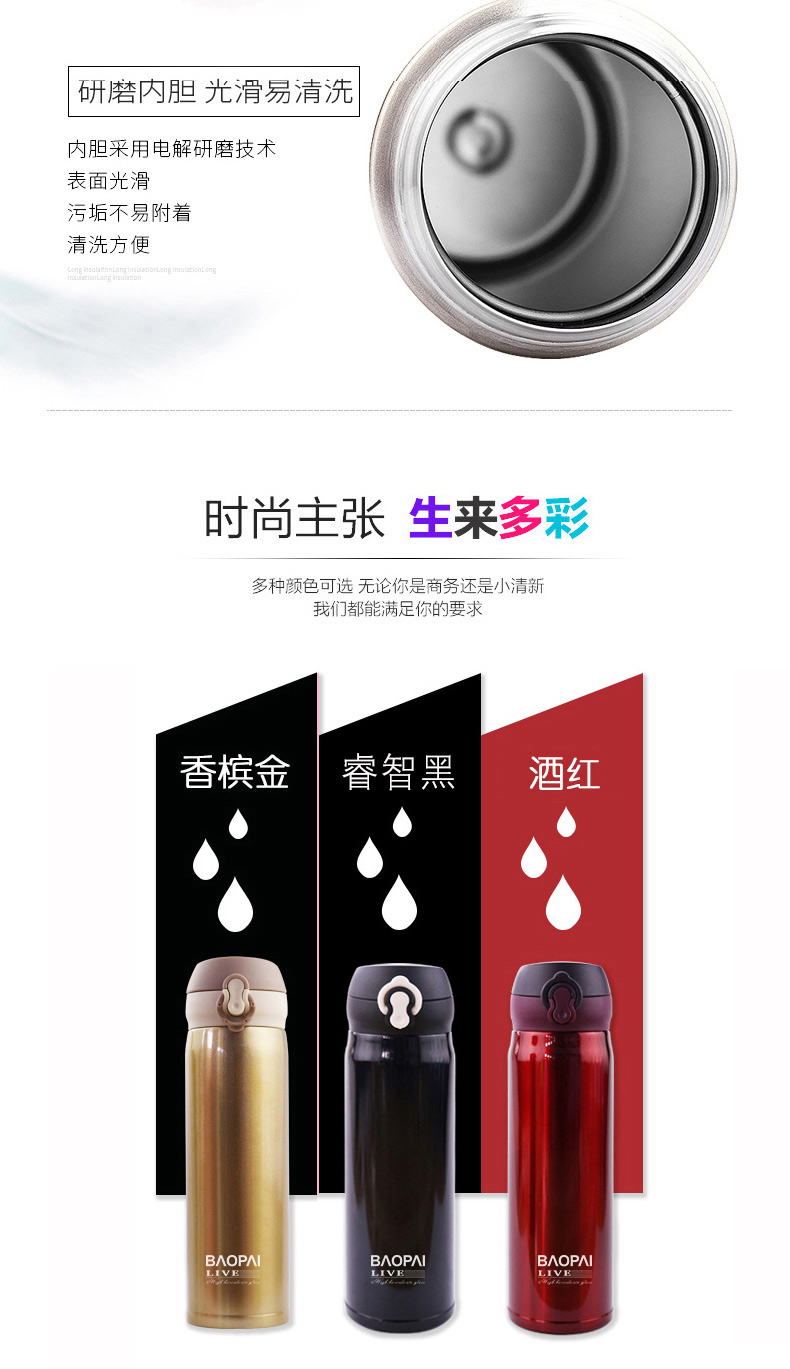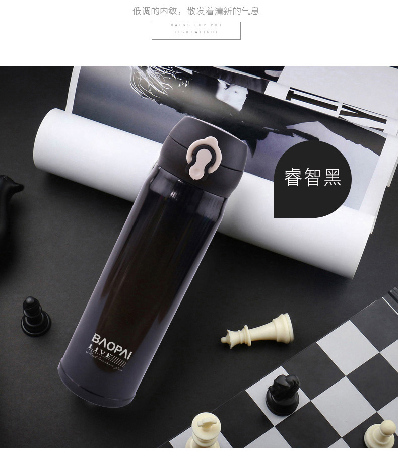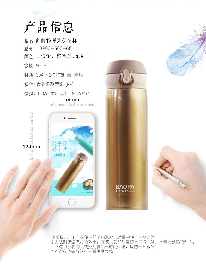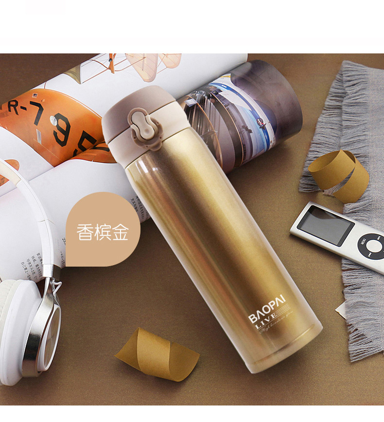 豹牌 500ml不锈钢真空保温杯 弹跳杯BP03-500-68 个 香槟金