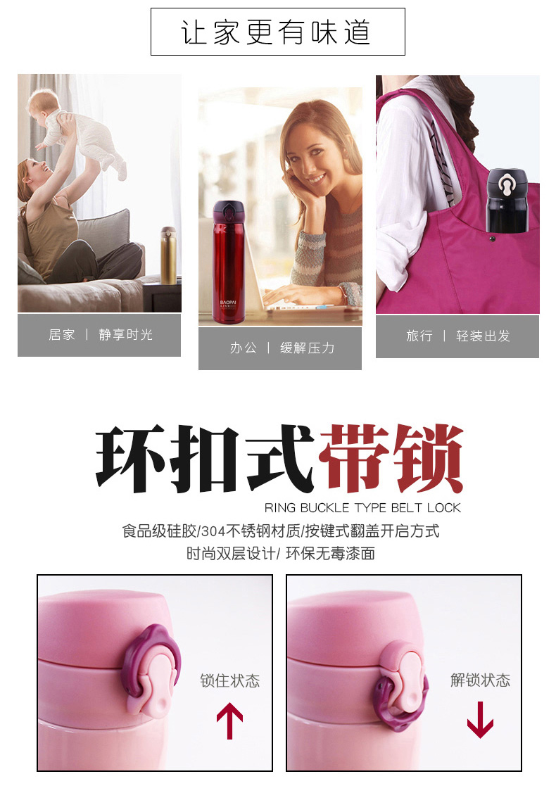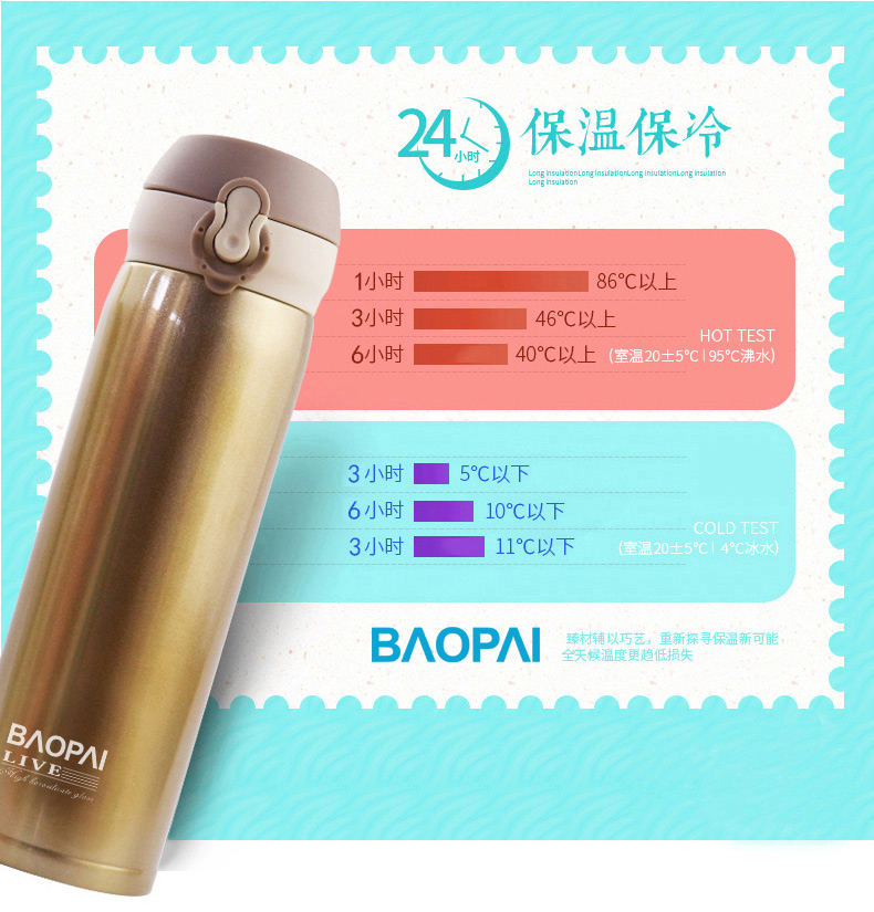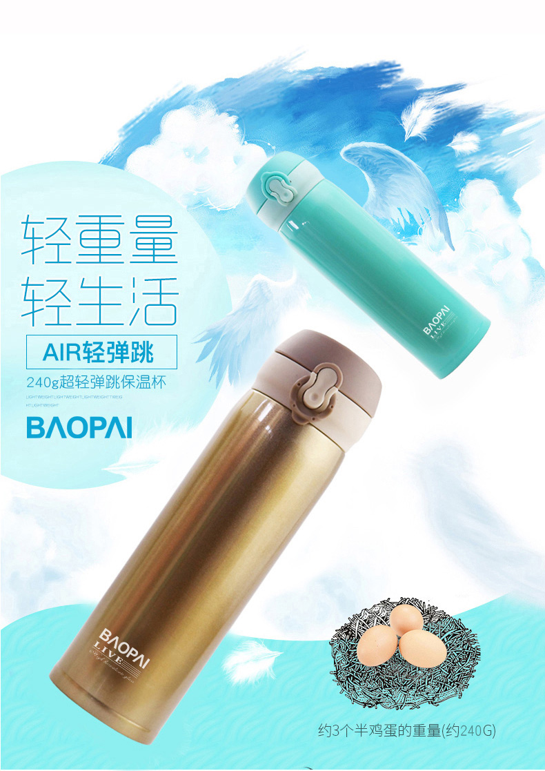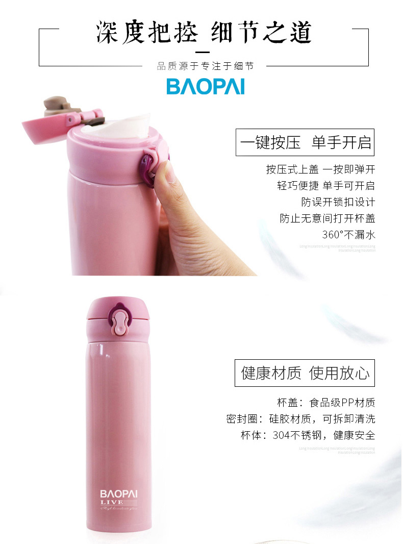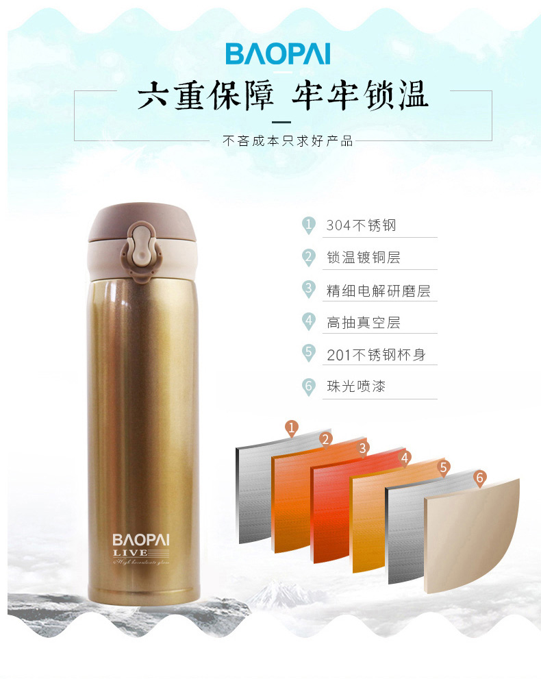 豹牌 500ml不锈钢真空保温杯 弹跳杯BP03-500-68 个 香槟金