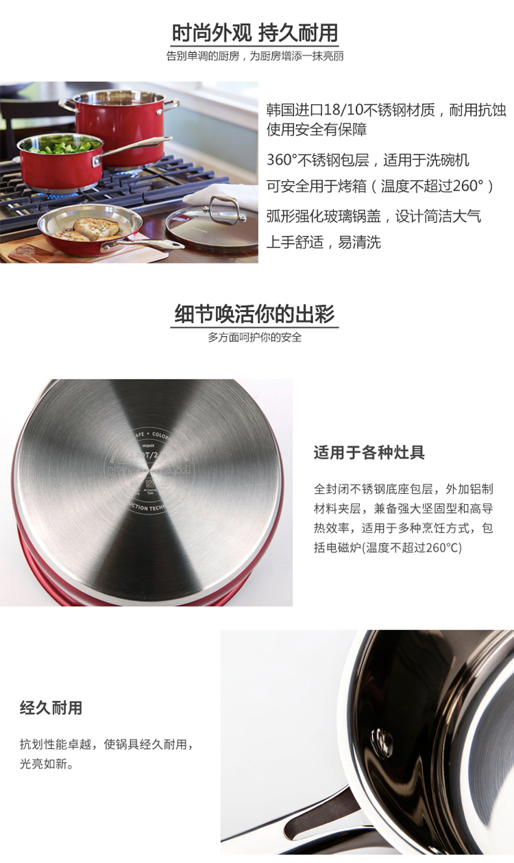 凯膳怡KitchenAid不锈钢焕彩汤锅KC2S20PLLS系列(带盖) 不锈钢色
