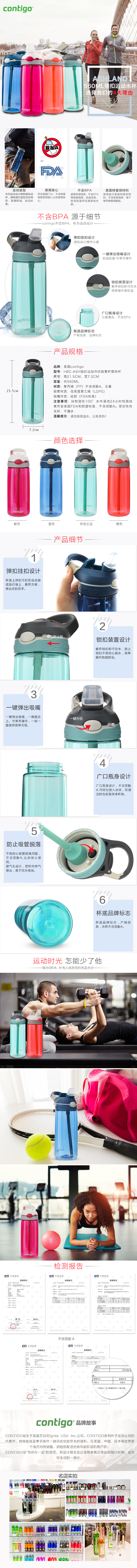 康迪克contigo Ashland运动冷饮吸管杯 HBC-ASH560ML 粉色