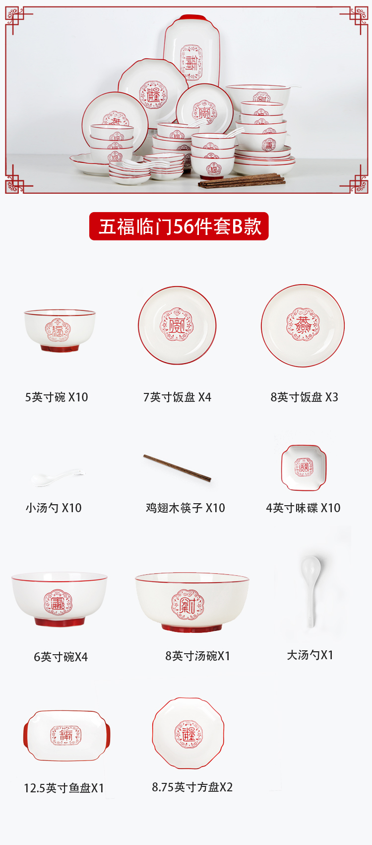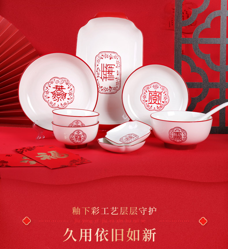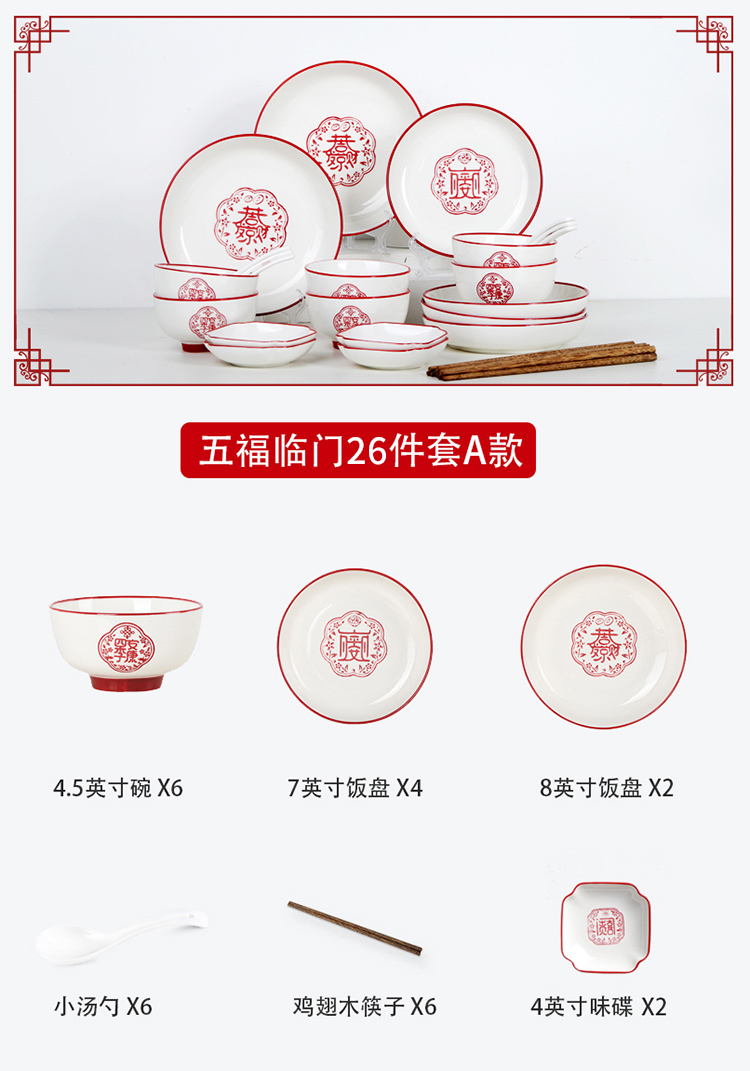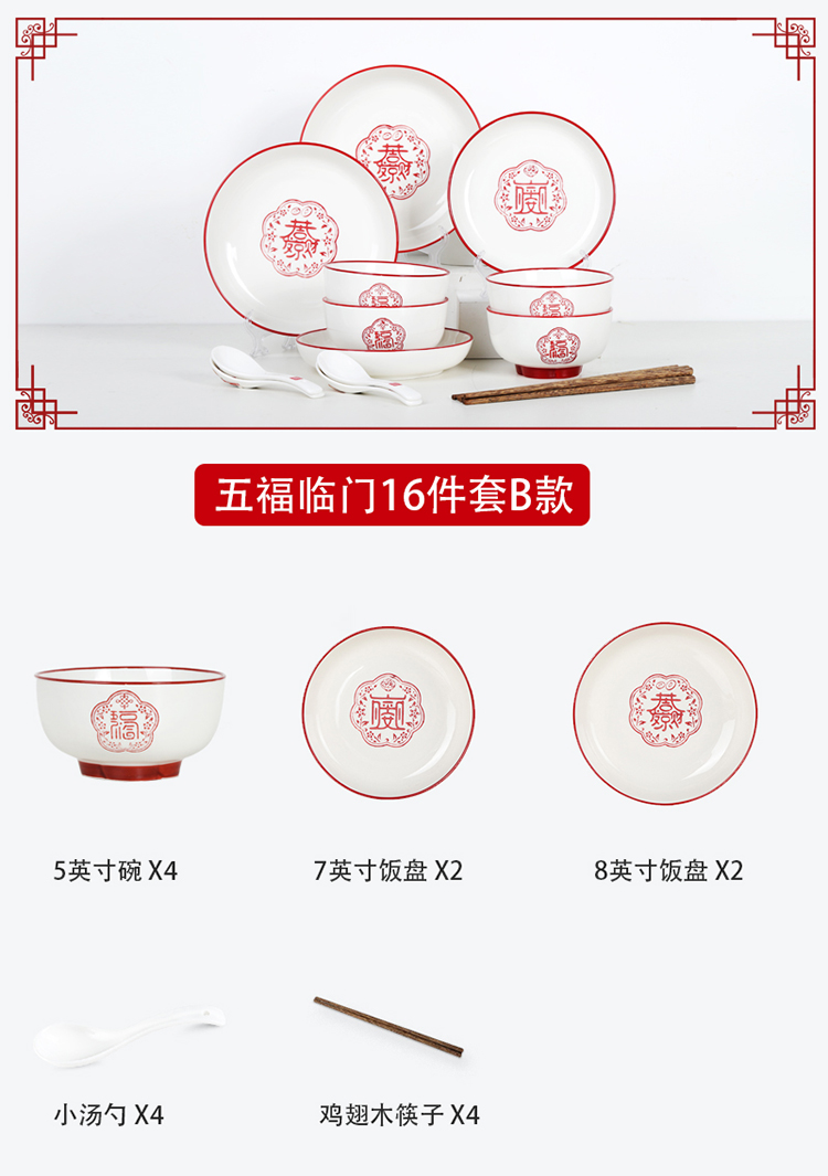 顺祥陶瓷餐具五福临门套装餐具56头 A款 枫叶色 枫叶色