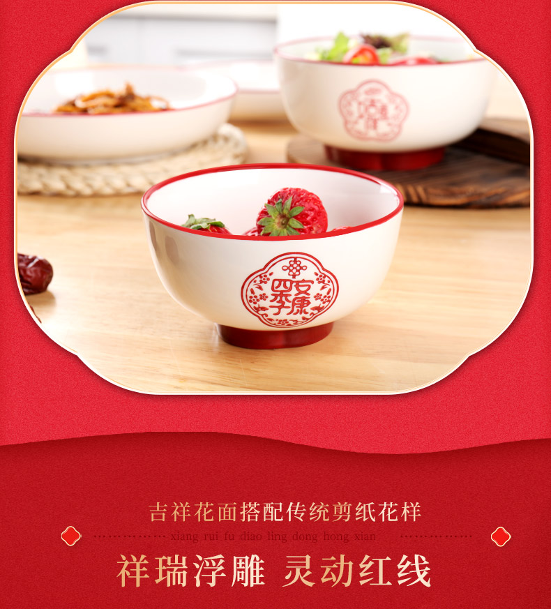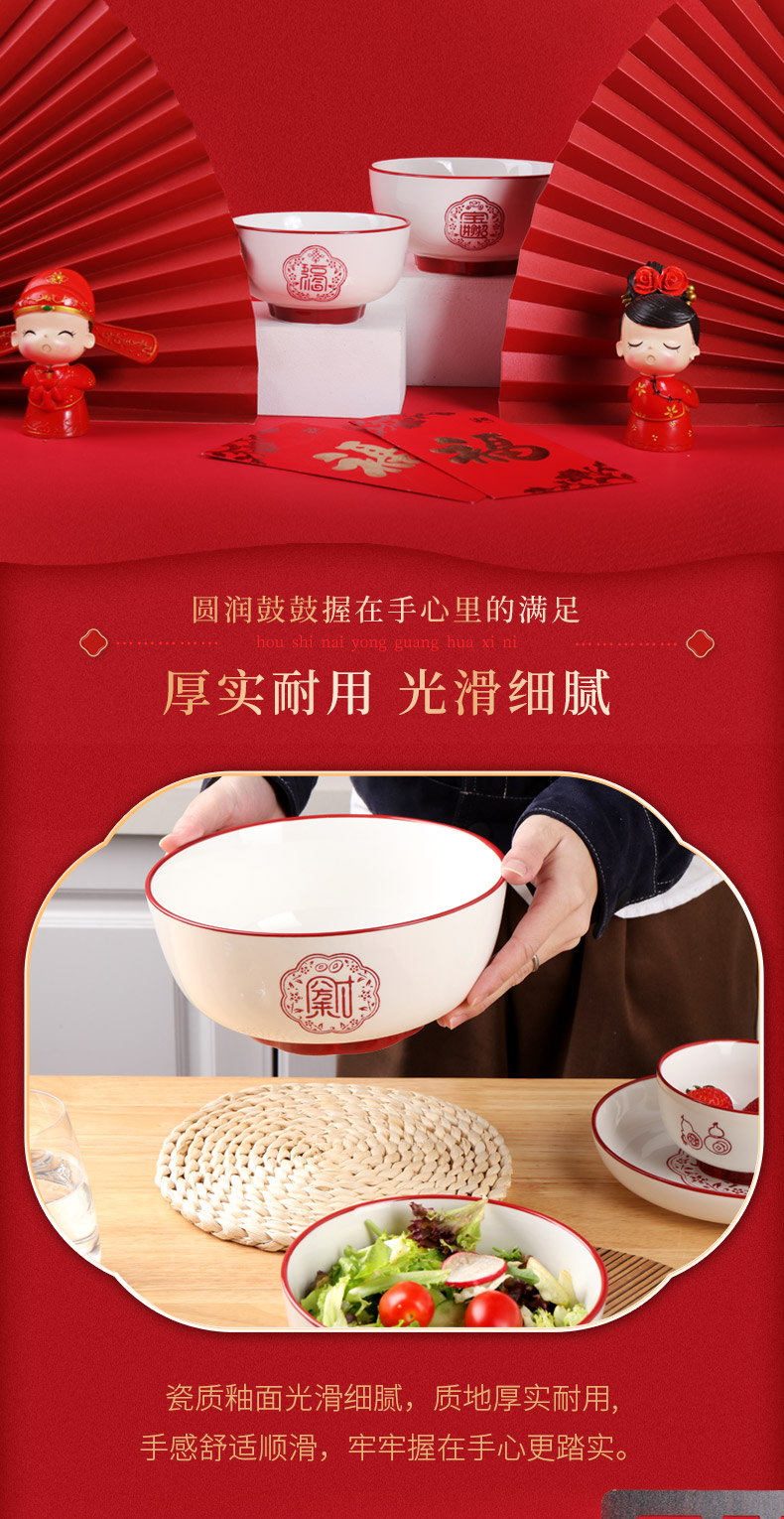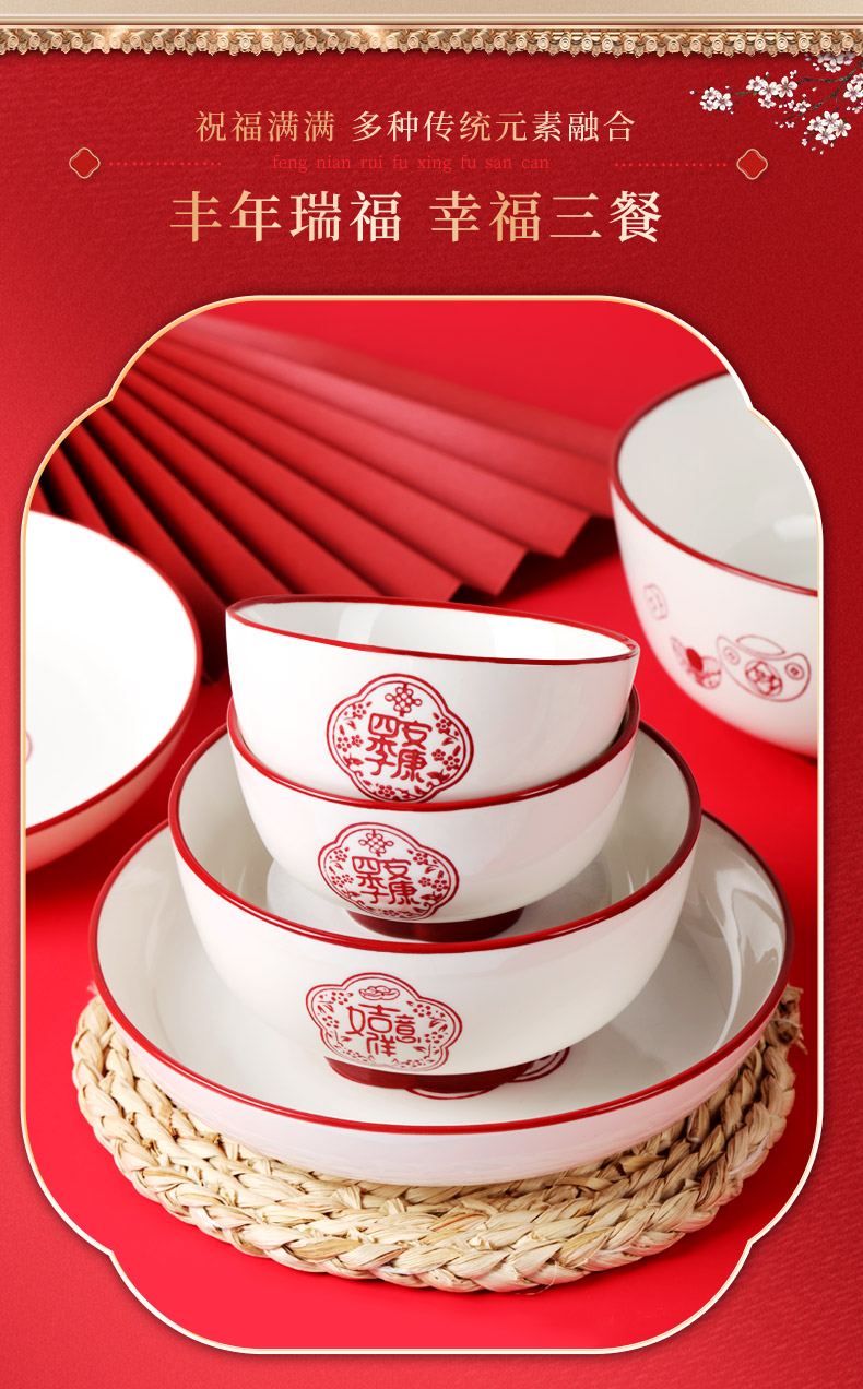 顺祥陶瓷餐具五福临门套装餐具56头 A款 枫叶色 枫叶色