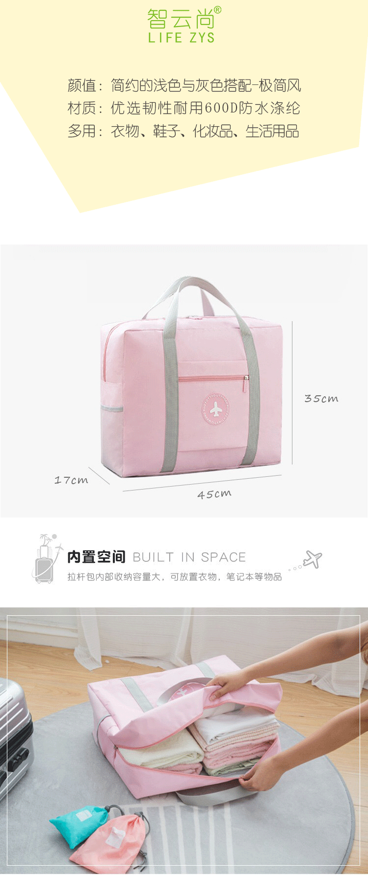 LIFEZYS智云尚出行拉杆箱收纳旅行包(单位:个) 粉色ZYS-CX-077