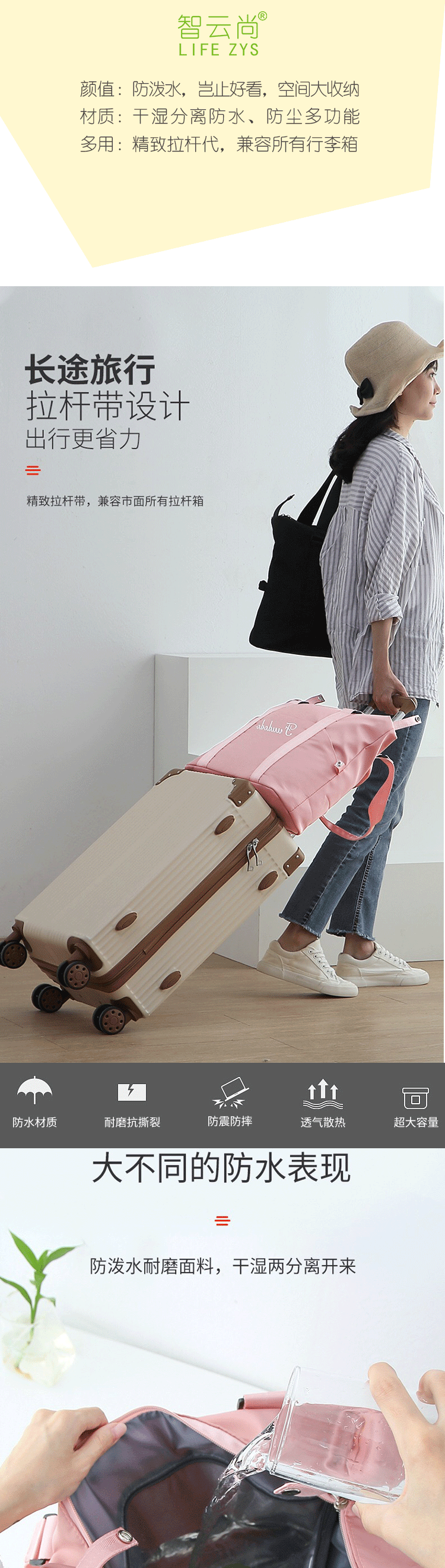 LIFEZYS智云尚旅行包短途手提轻便大容量行李包袋 黑色ZYS-CX-023 (单位:个) 粉色ZYS-CX-022