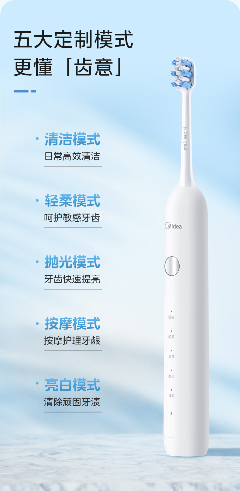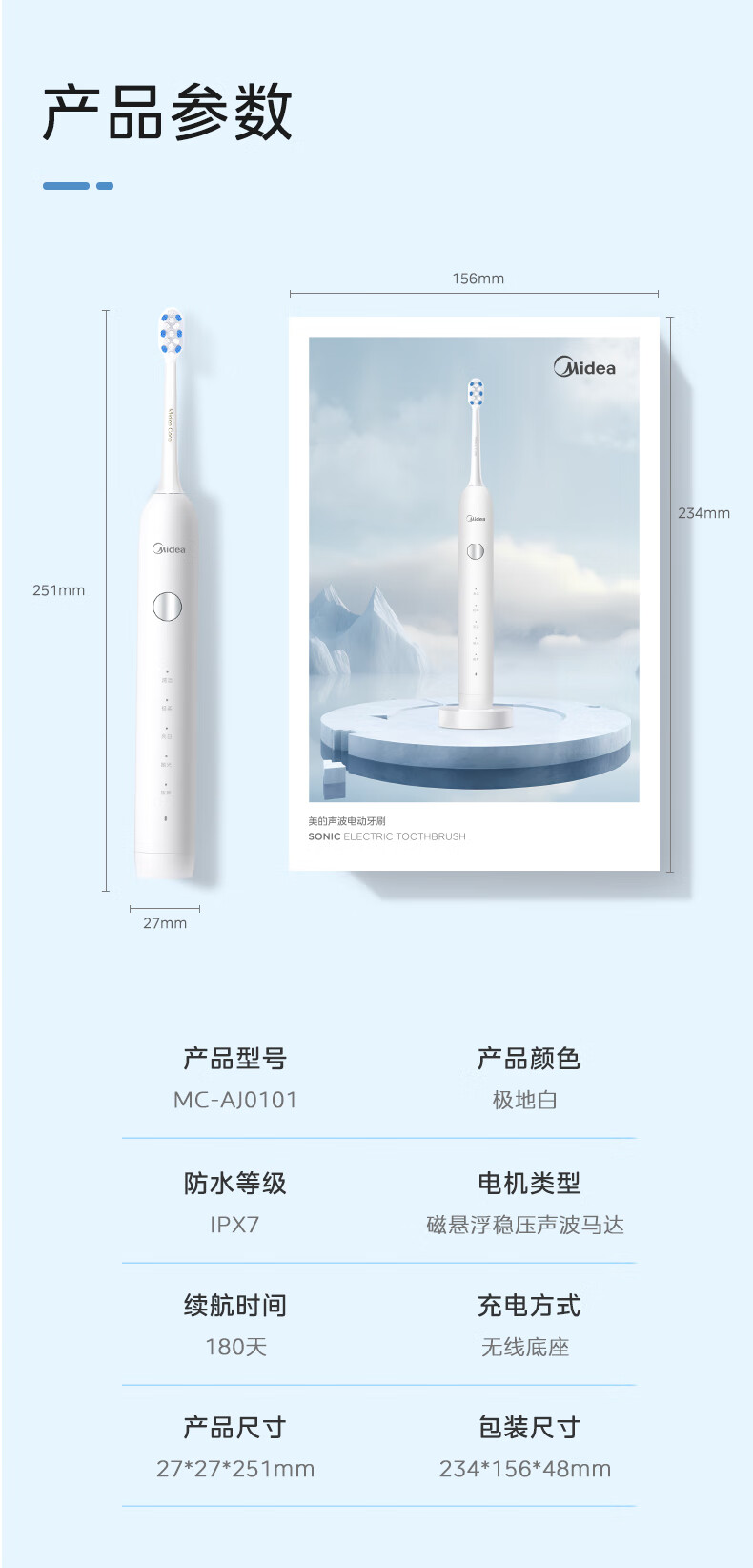 美的(Midea) MC-AJ0101 234*156*48mm MR1系列 电动牙刷 冰川白(单位:台)