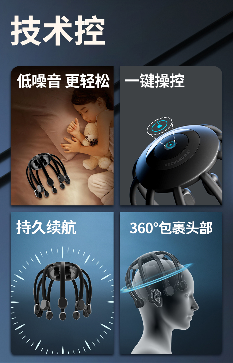 和正(HEZHENG) HZ-IH-1 14颗按摩头 多维度头部按摩器 黑色(单位:个)