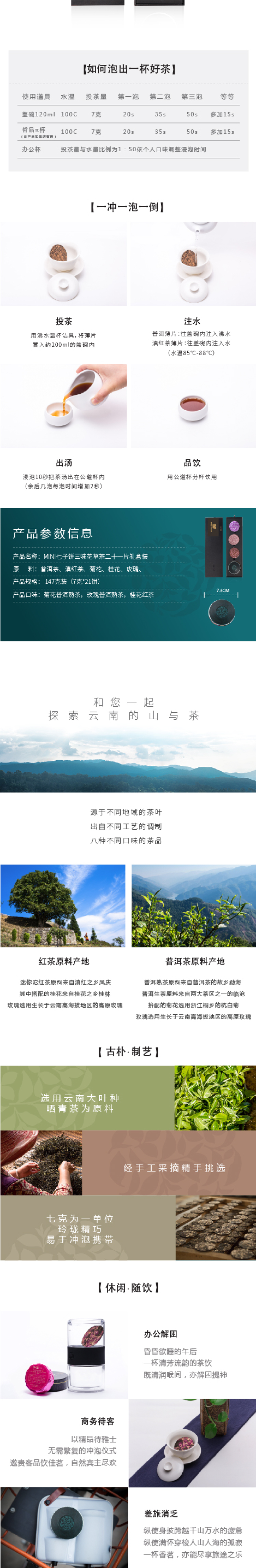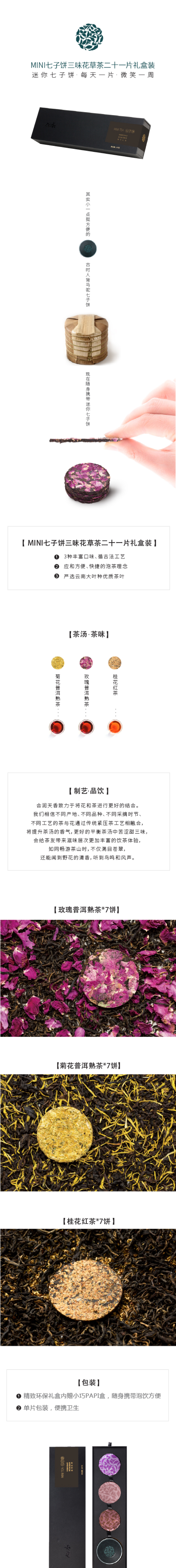 合润天香云南迷你花草茶小饼茶普洱熟茶红茶三味礼盒装伴手礼147g 灰蓝色