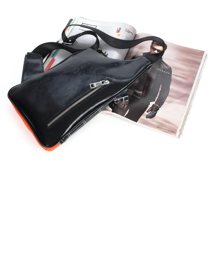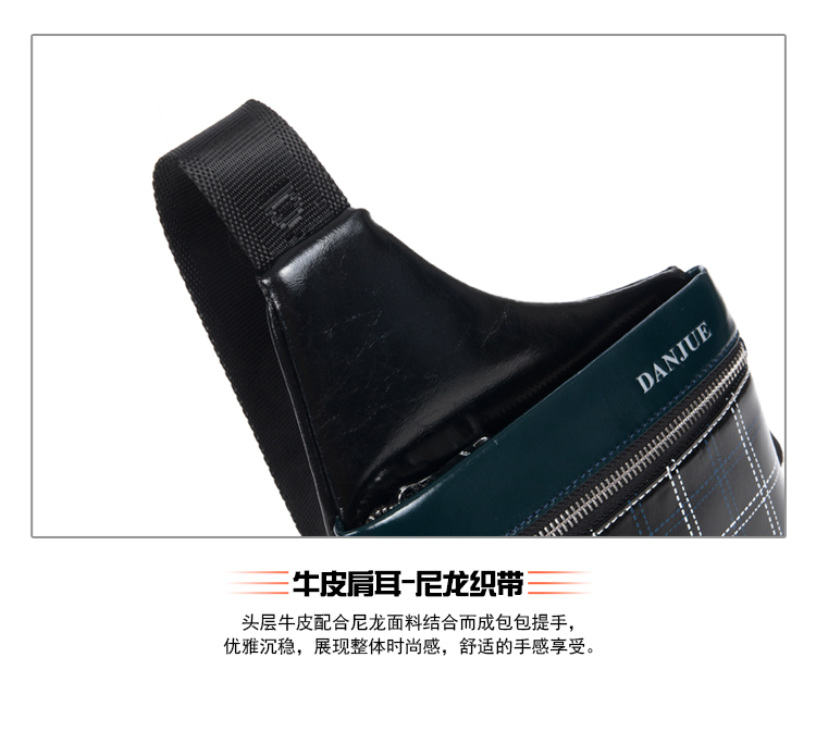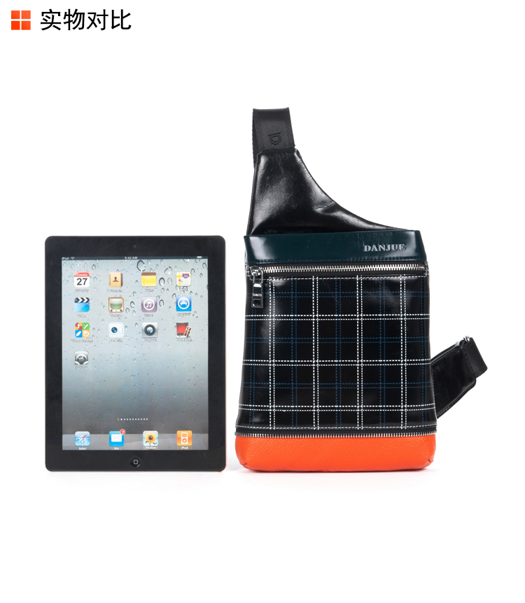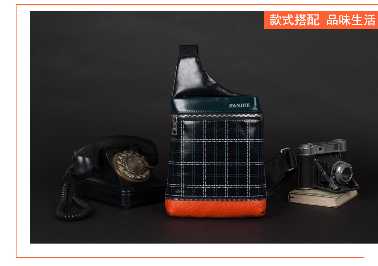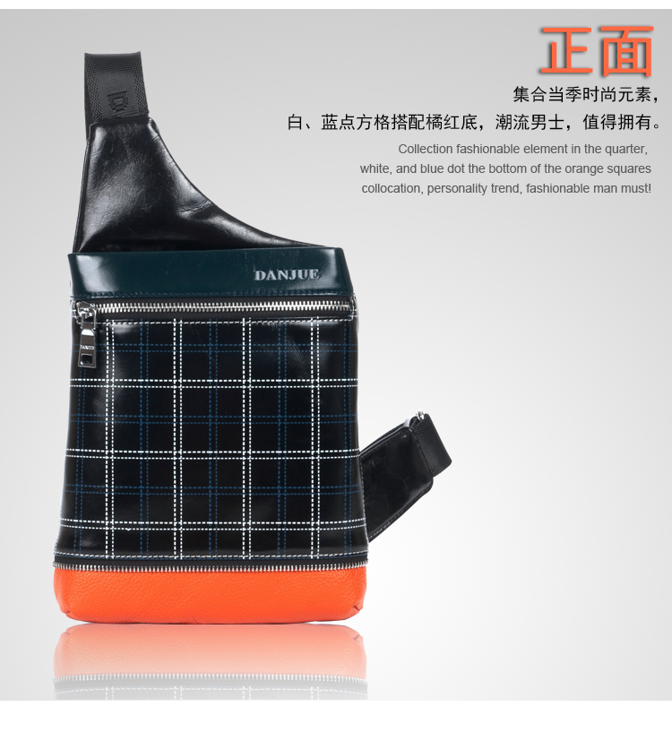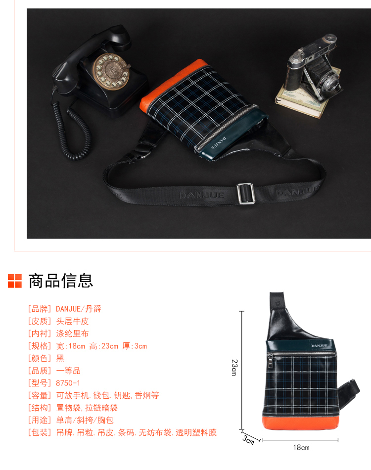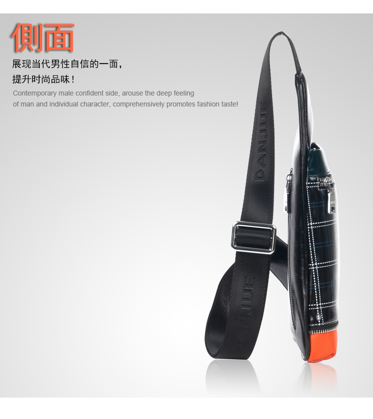 丹爵(DANJUE)全牛皮时尚个性圆筒胸包单肩斜挎包运动休闲包小背包潮流酷包撞色包8750-1 黑色