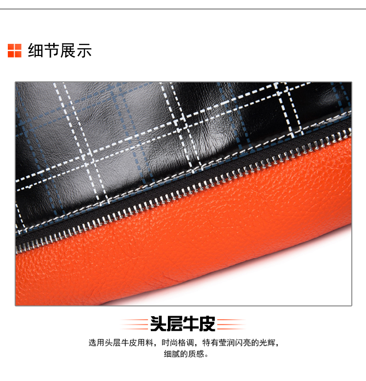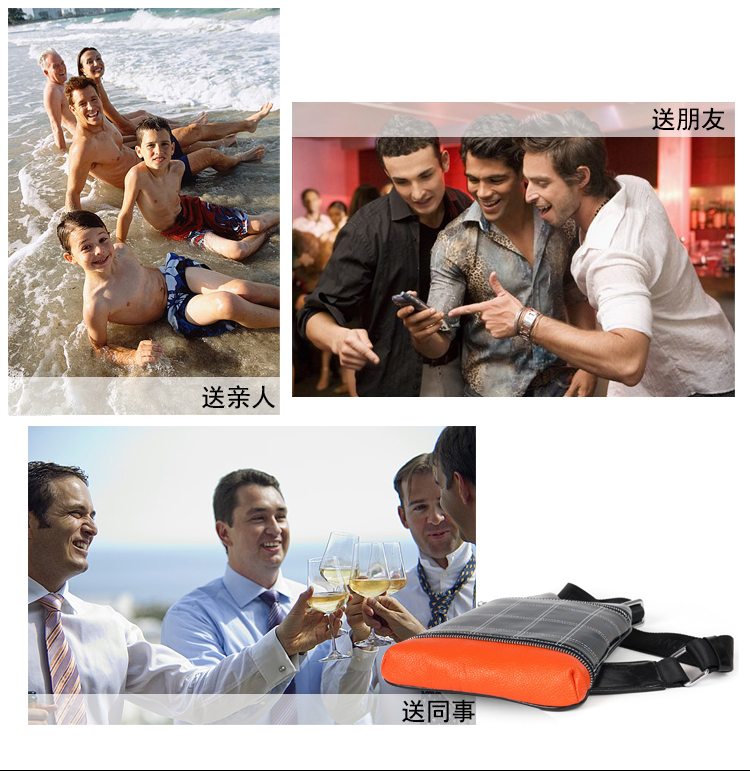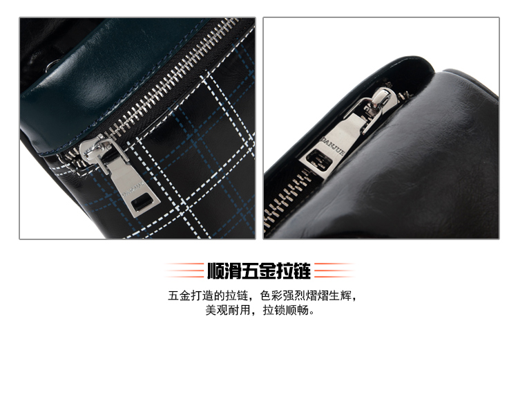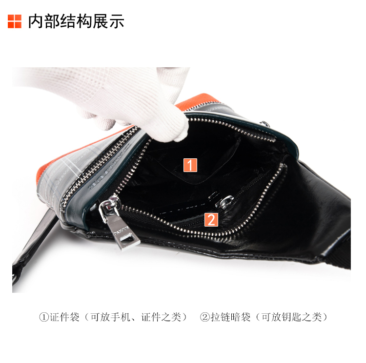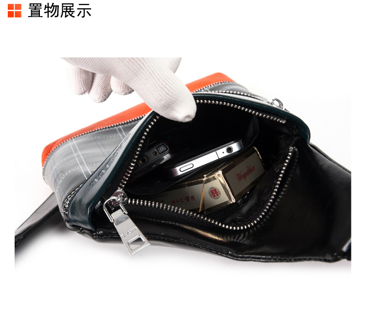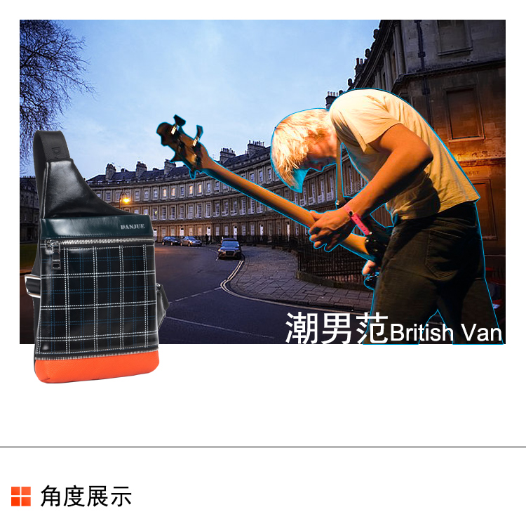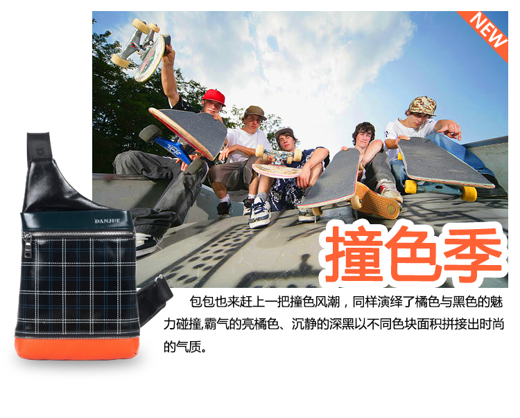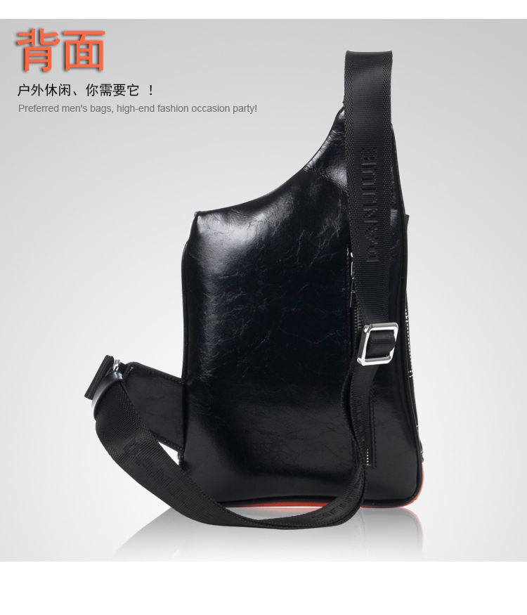 丹爵(DANJUE)全牛皮时尚个性圆筒胸包单肩斜挎包运动休闲包小背包潮流酷包撞色包8750-1 黑色