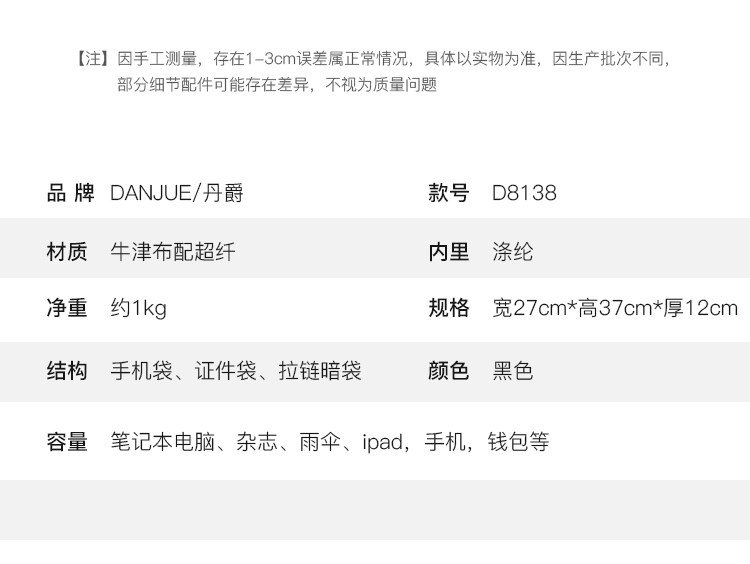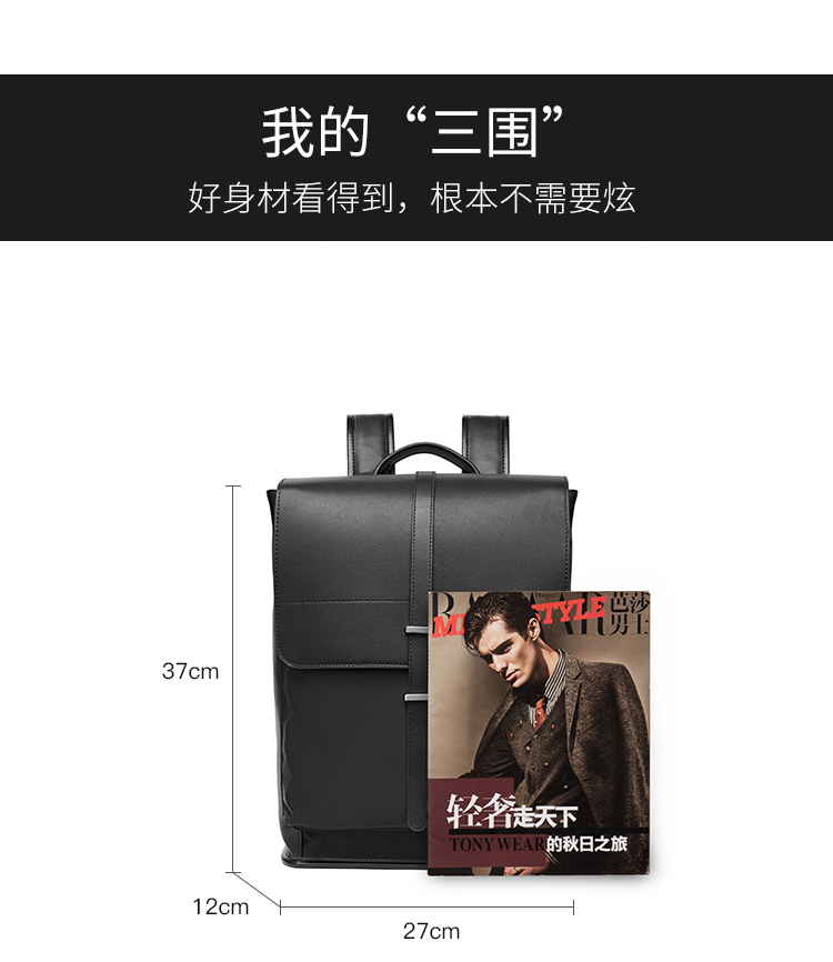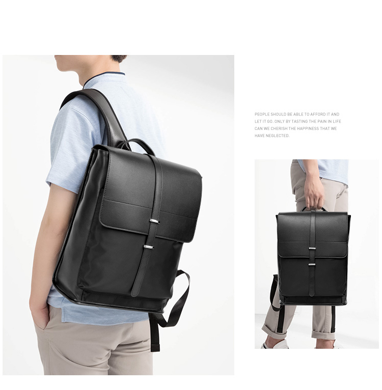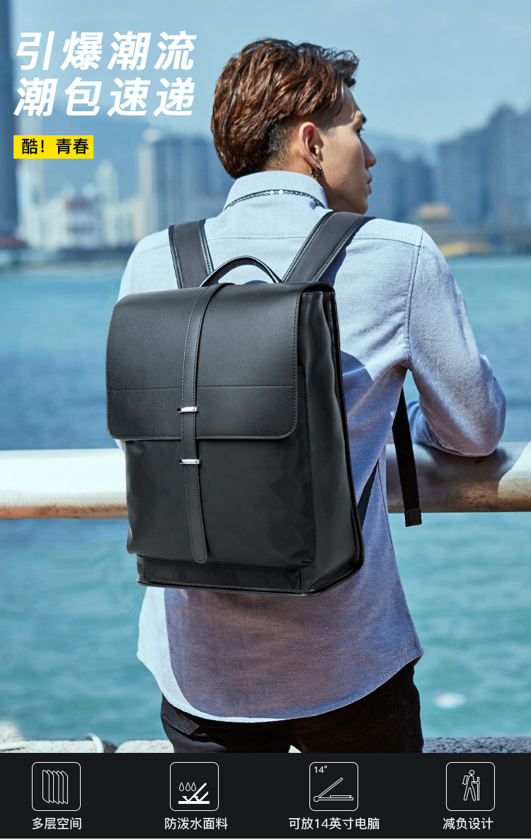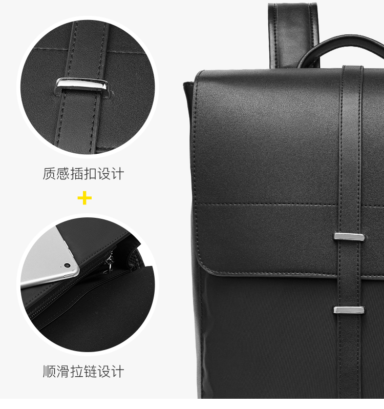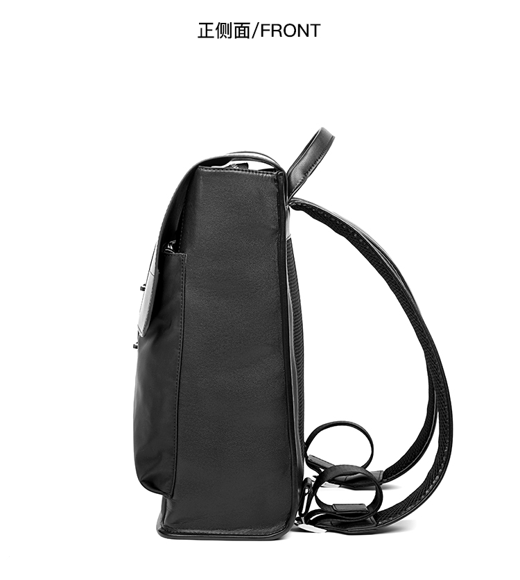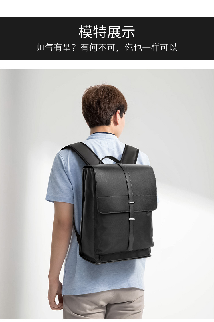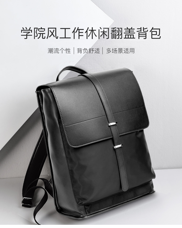 丹爵(DANJUE)简约时尚防水布料配男士双肩包潮流个性学院风工作休闲翻盖背包 D8138 黑色