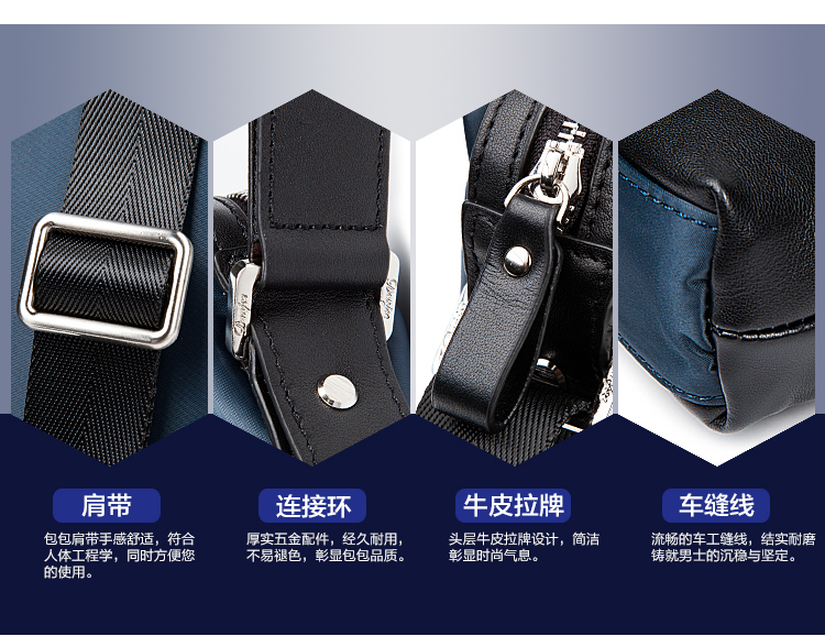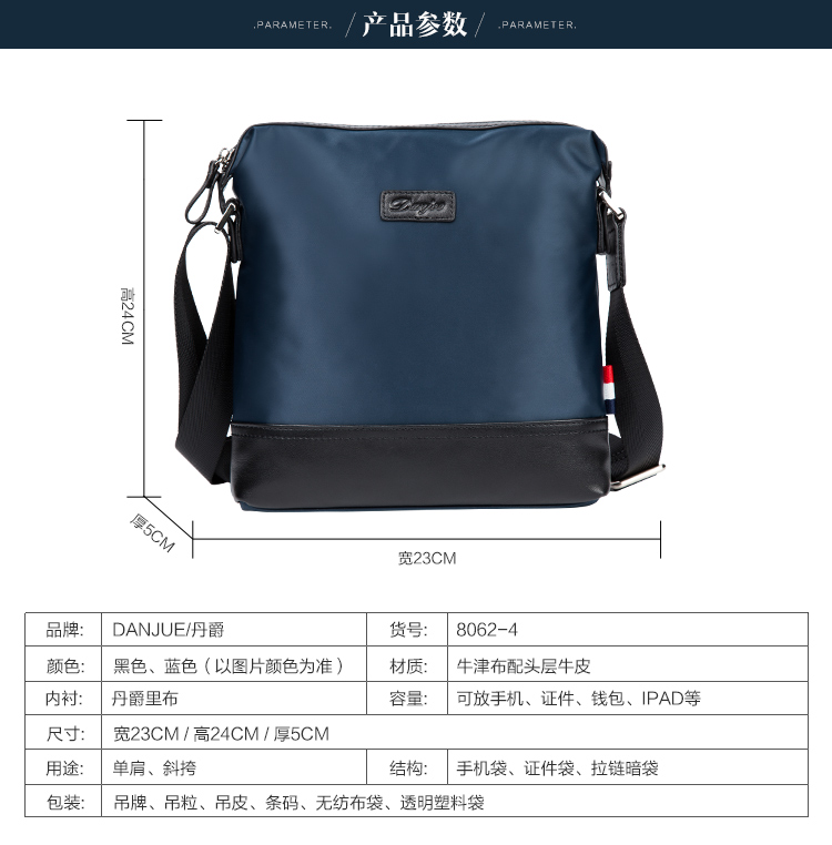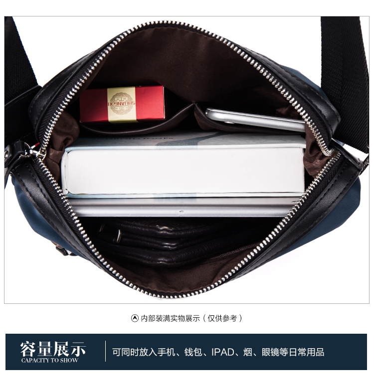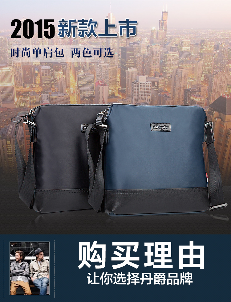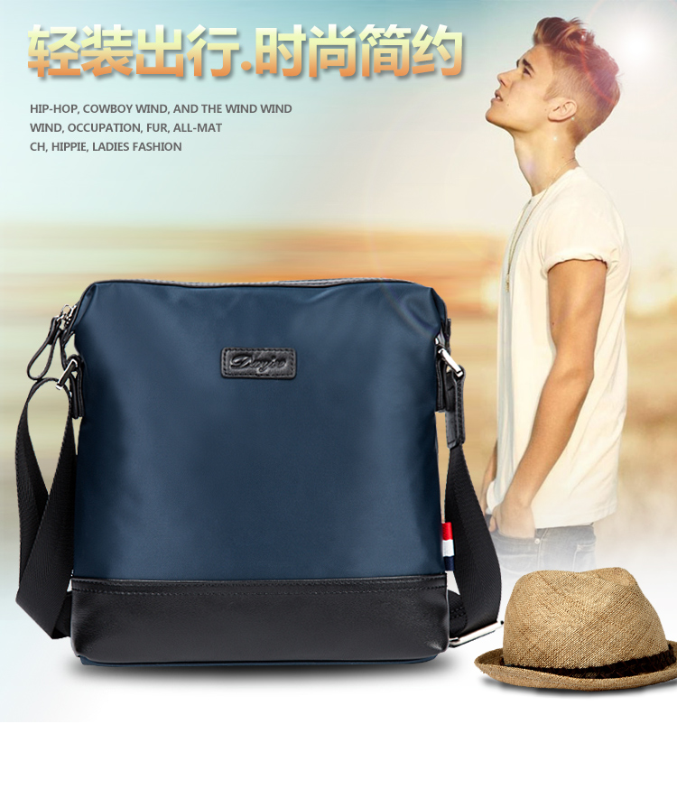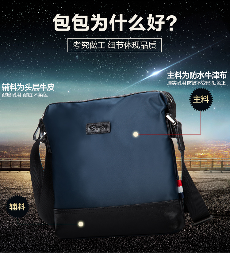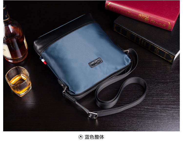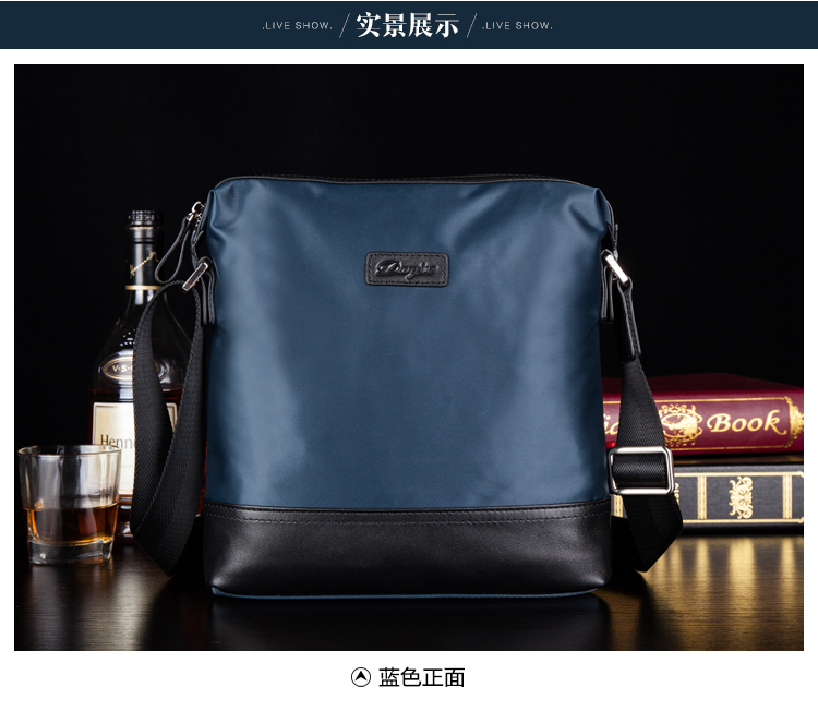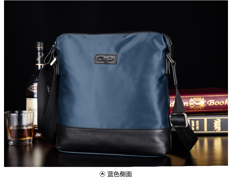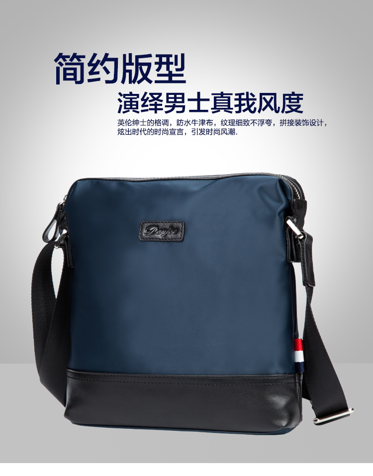 丹爵时尚新款撞色防水牛津布单肩斜挎包休闲男士布包商务男包D8062-4 蓝色