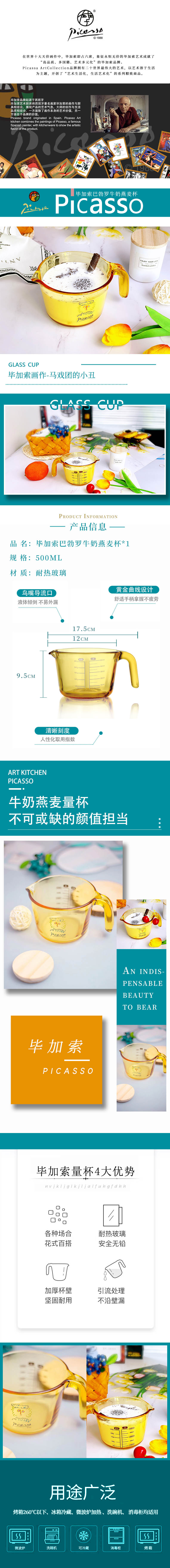 毕加索巴勃罗牛奶燕麦杯P-HL500/L1 灰橙色