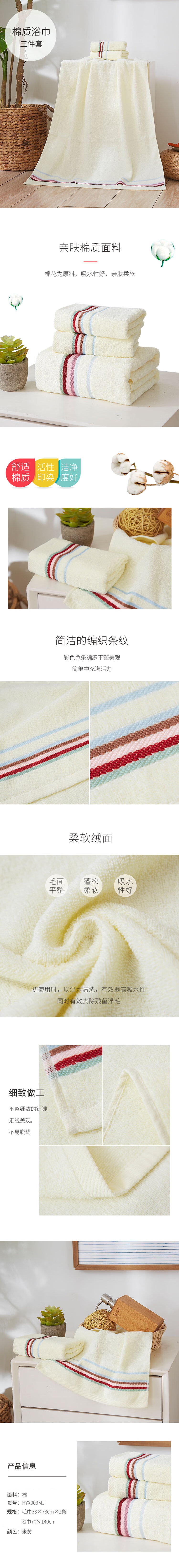 恒源祥倾心浴巾三件套(米黄色)HYX003MJ毛巾33x73cm 浴巾70x140cm (单位:套) 米黄色