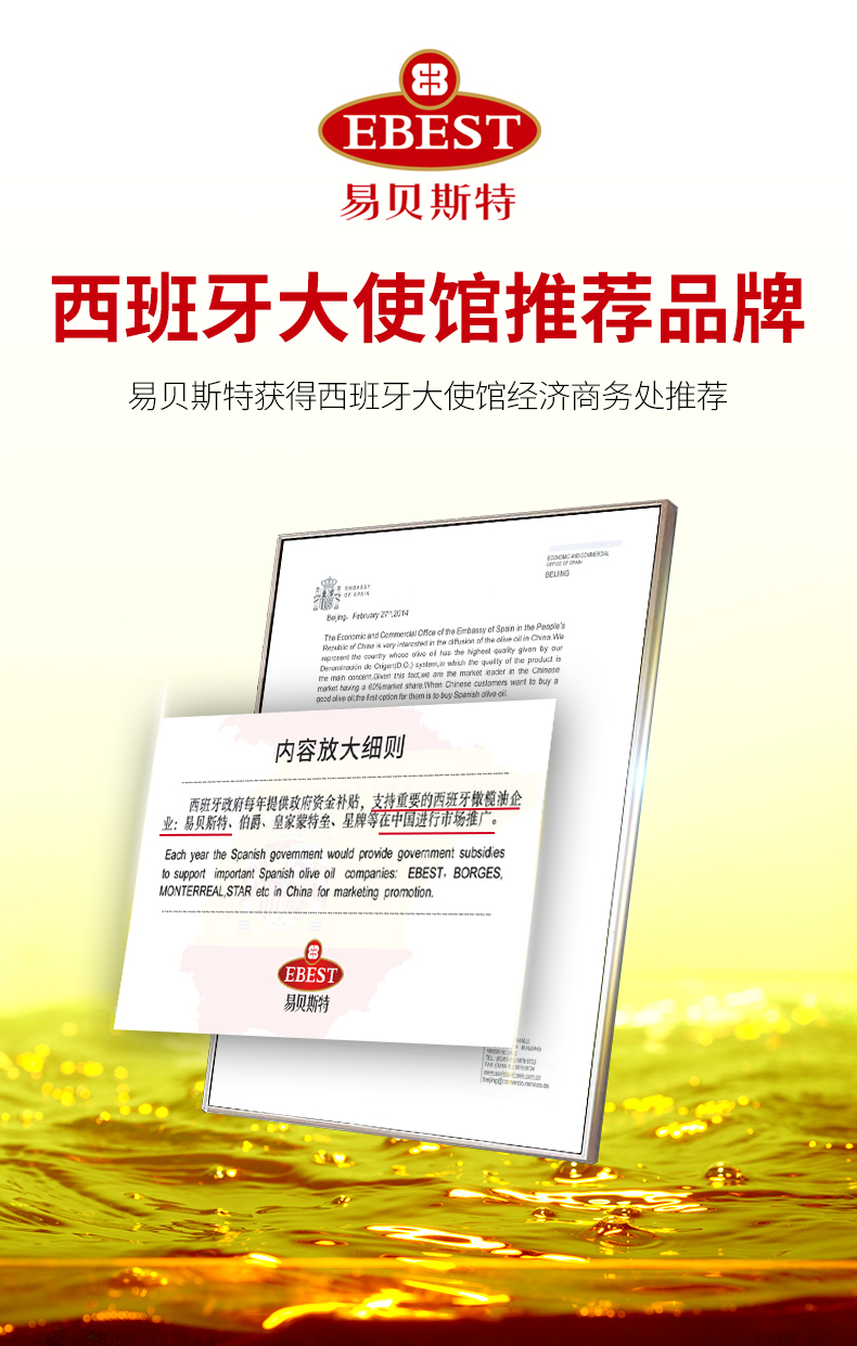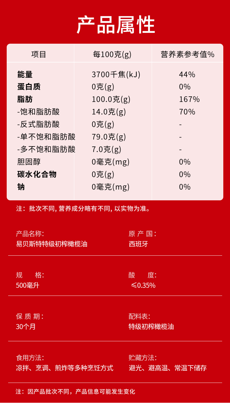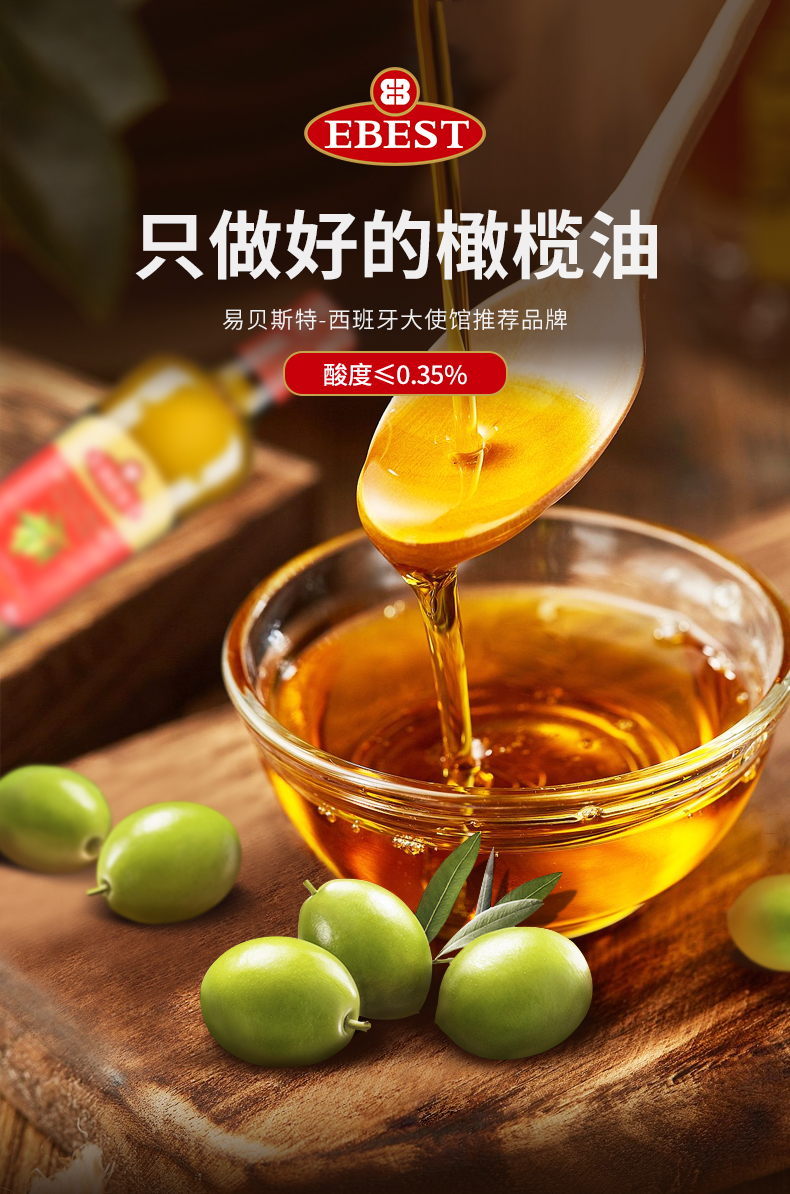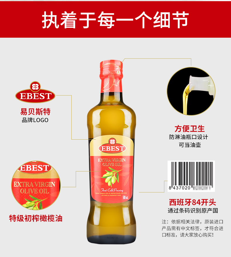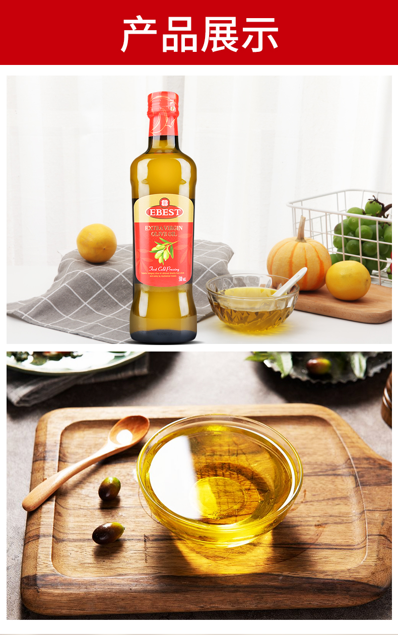 易贝斯特特级初榨橄榄油500ml瓶 红色