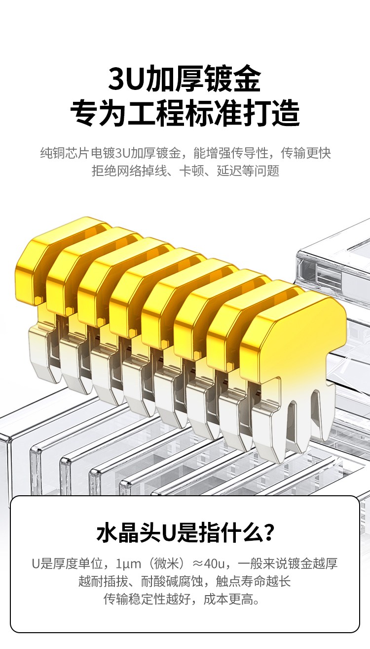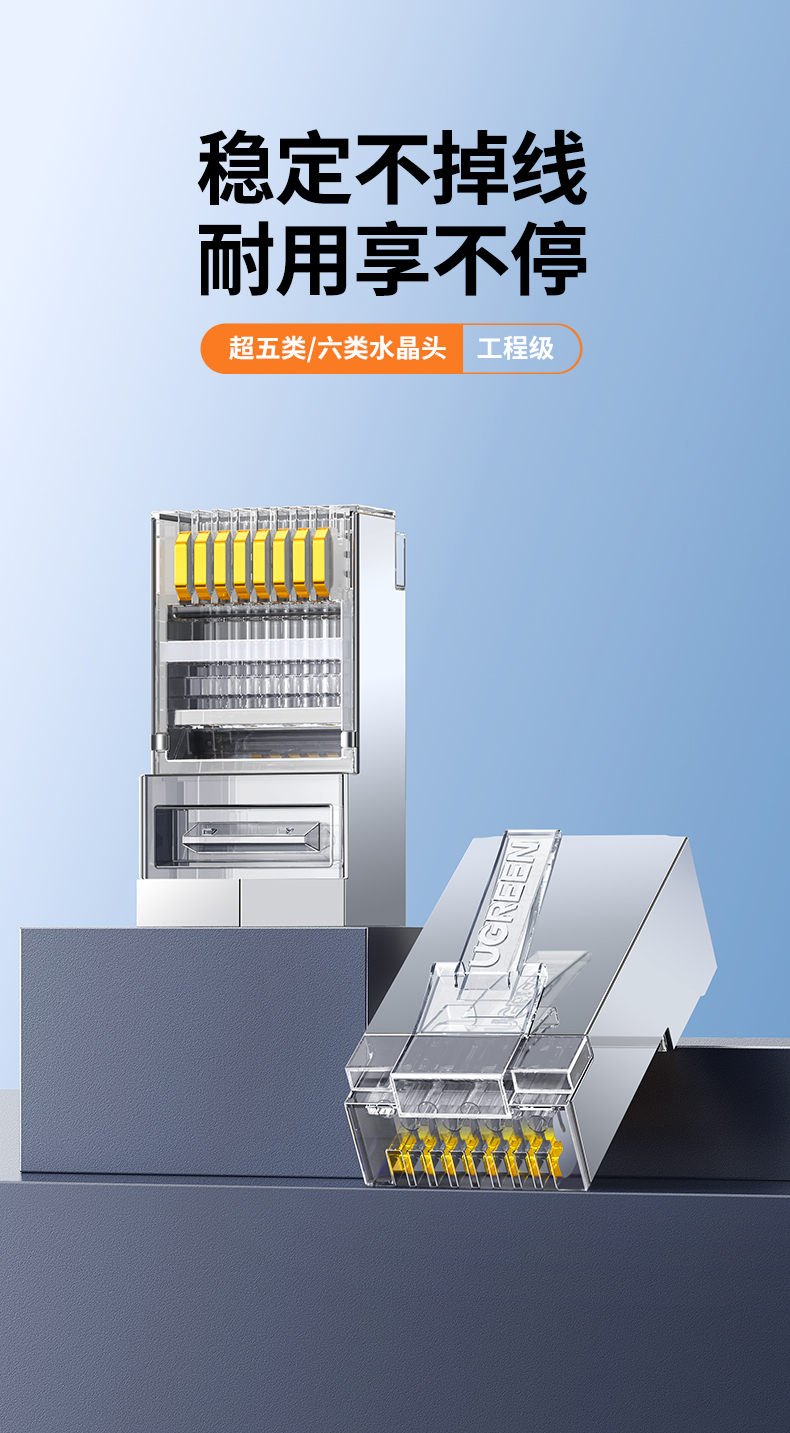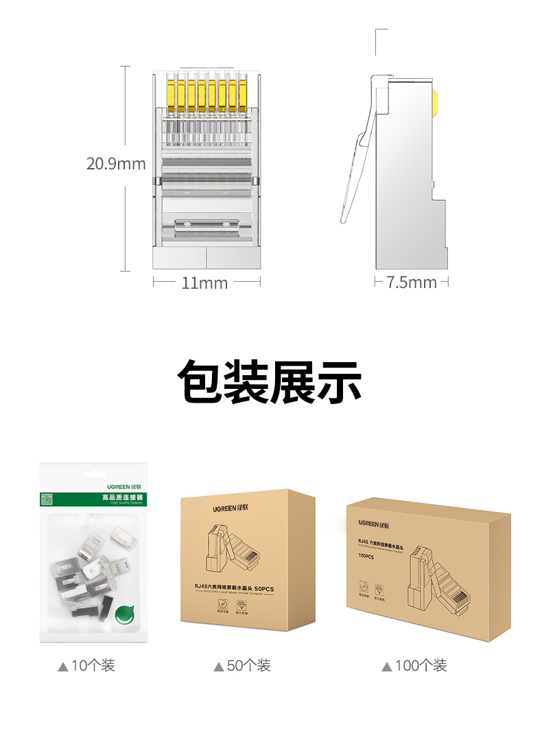 绿联(UGREEN) 6类千兆网络接头 100个 网线屏蔽水晶头 白色(单位:包)