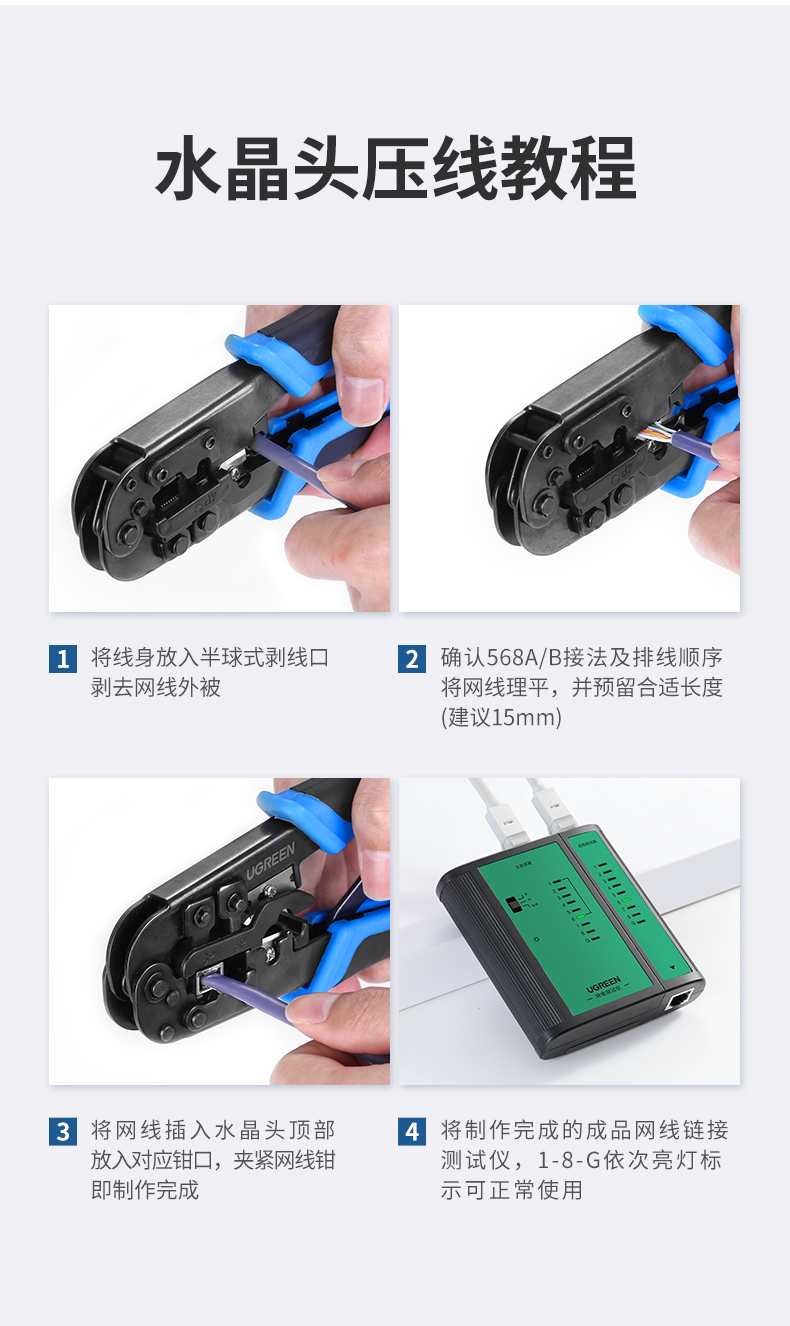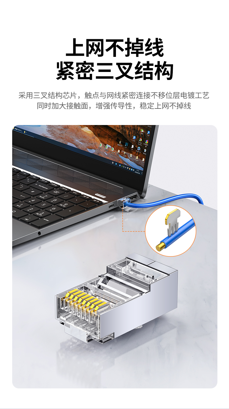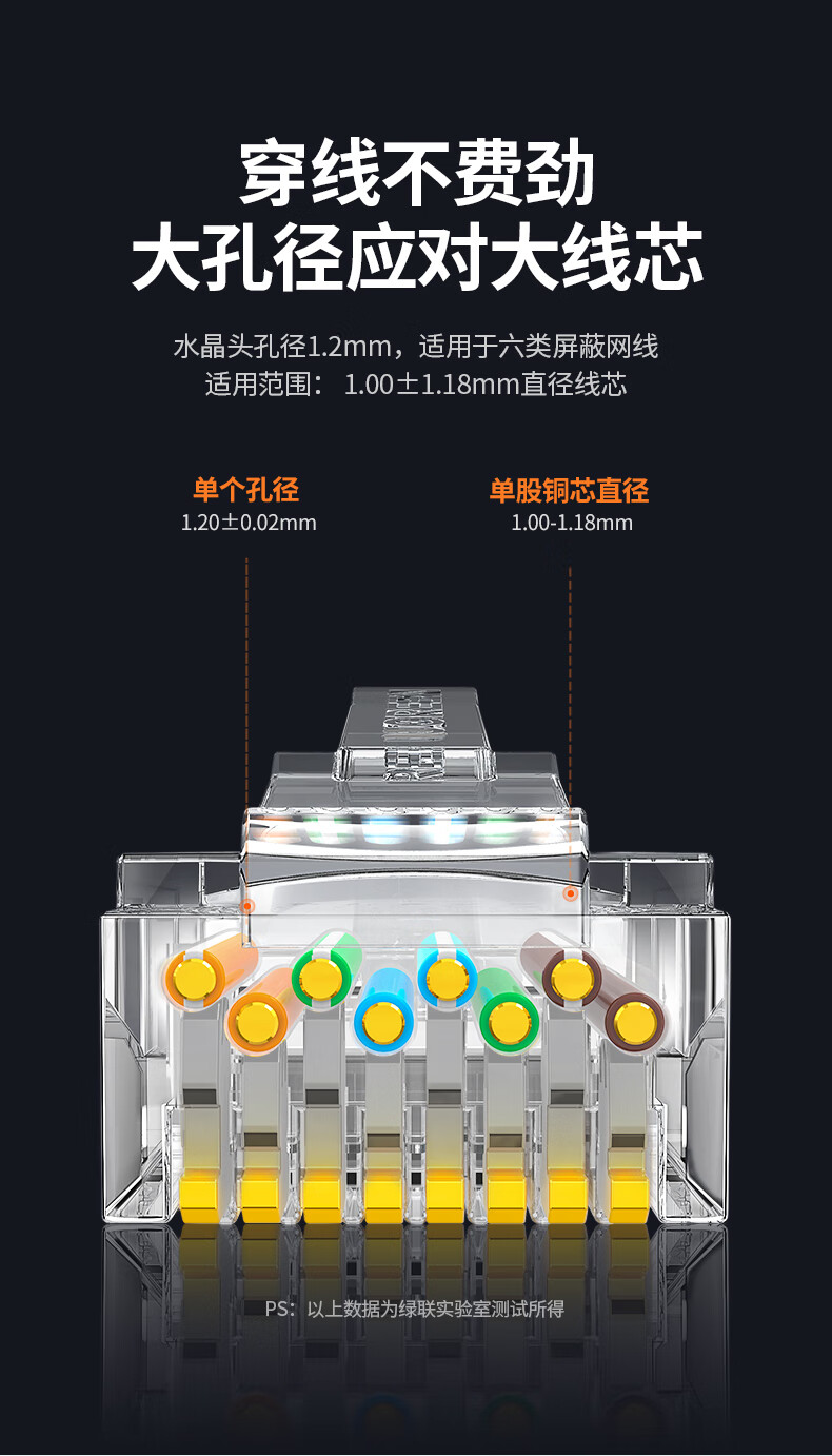绿联(UGREEN) 6类千兆网络接头 100个 网线屏蔽水晶头 白色(单位:包)