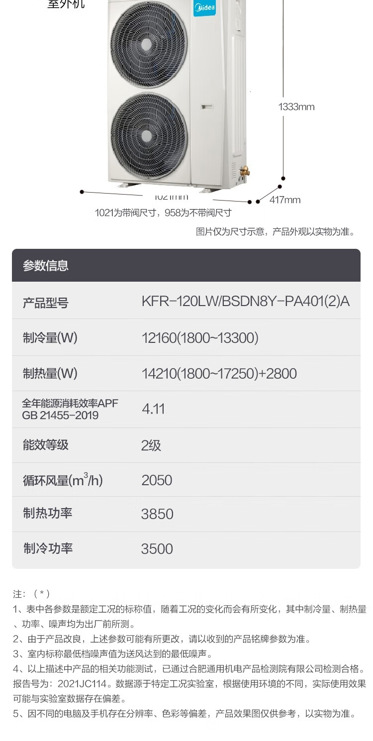 美的KFR-120LW/BSDN8Y-PA401(2)A 5匹立柜式空调 变频冷暖 二级能效(台)) 白色