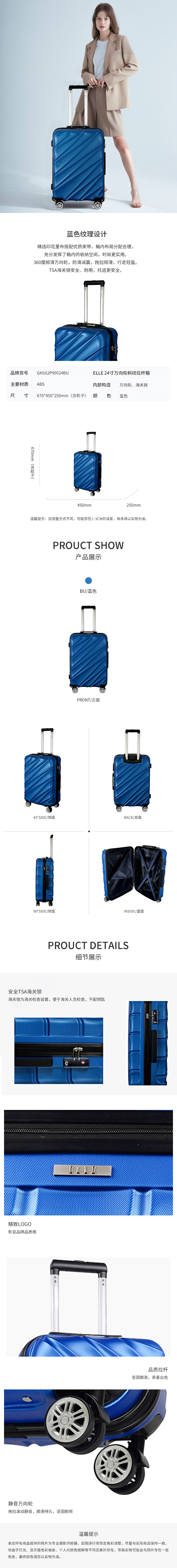 ELLE 24寸万向轮斜纹时尚拉杆箱GH162P90024(单位:个) 蓝色 24寸