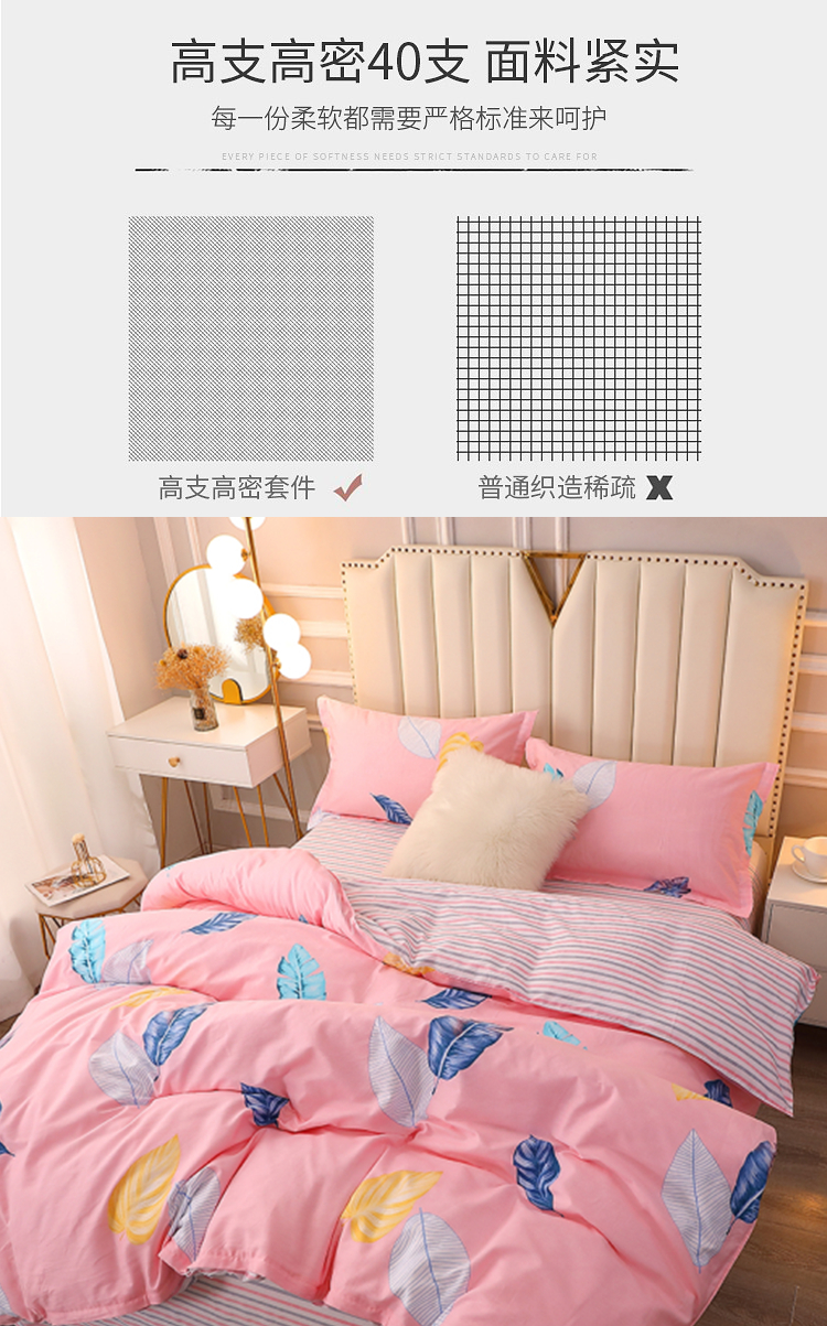 啄木鸟 PLOVER 纯棉四件套 四件套 叶羽相思 ZMN-CM-12 粉色