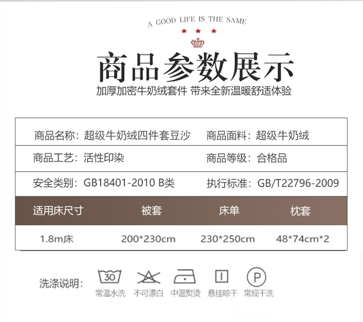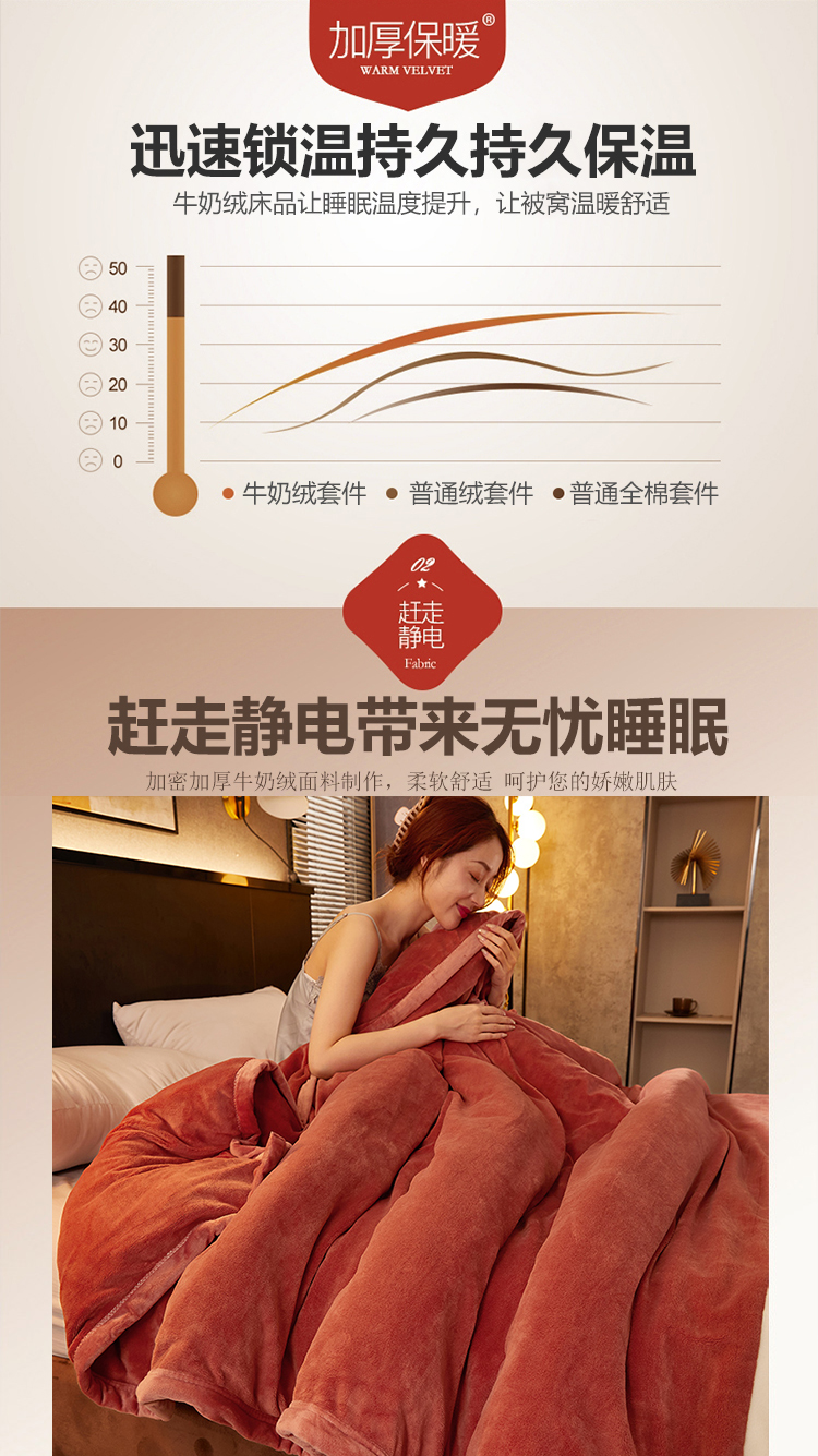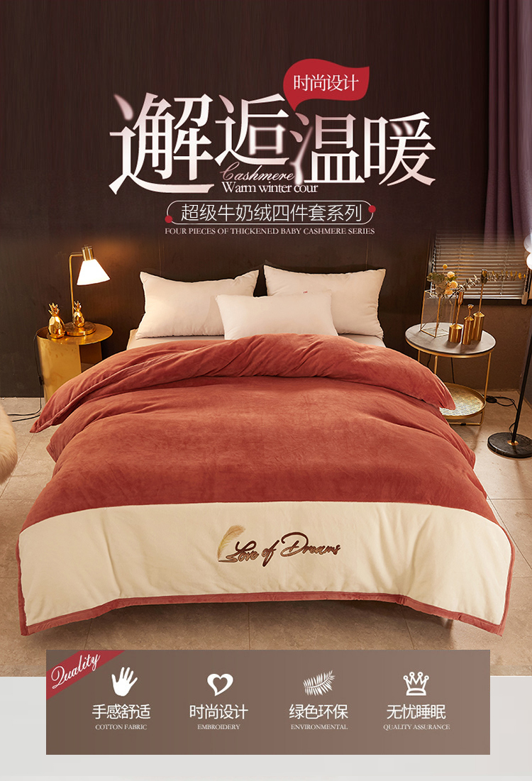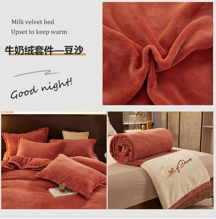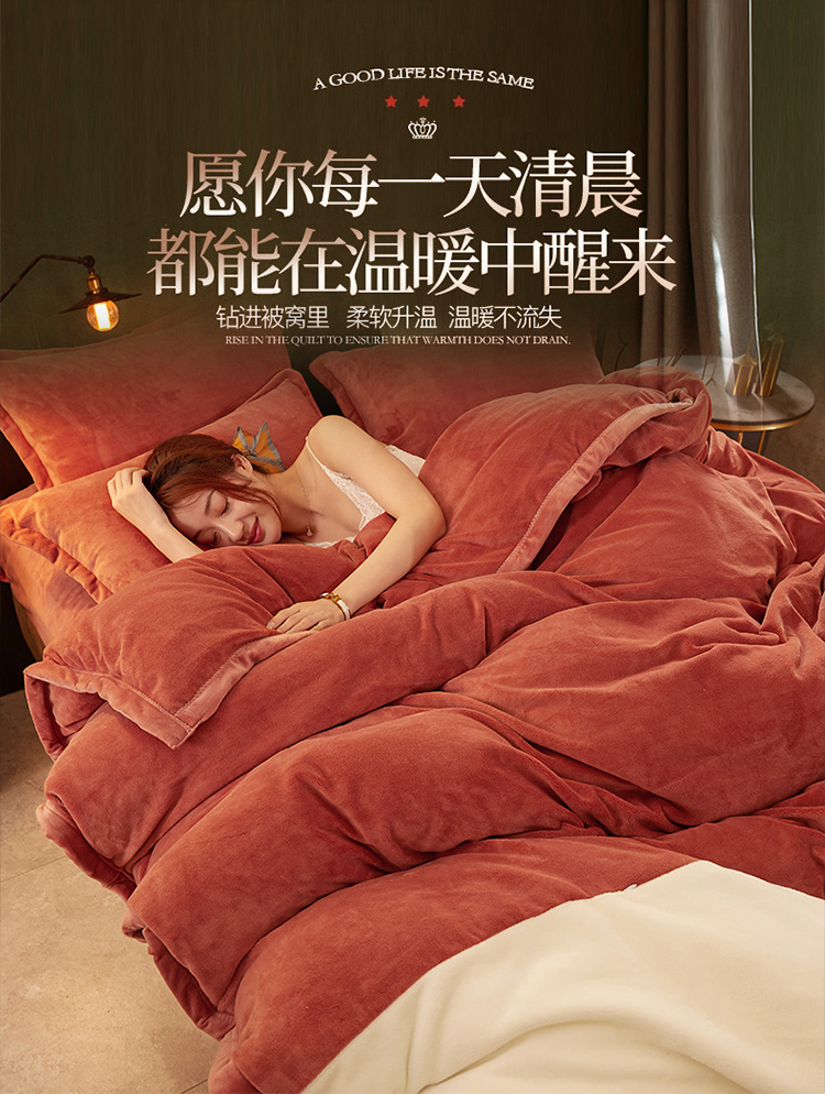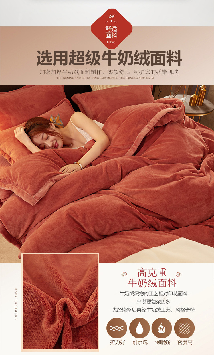 啄木鸟 PLOVER 家纺 超级牛奶绒四件套 豆沙 ZMN-NNR-01 豆沙色