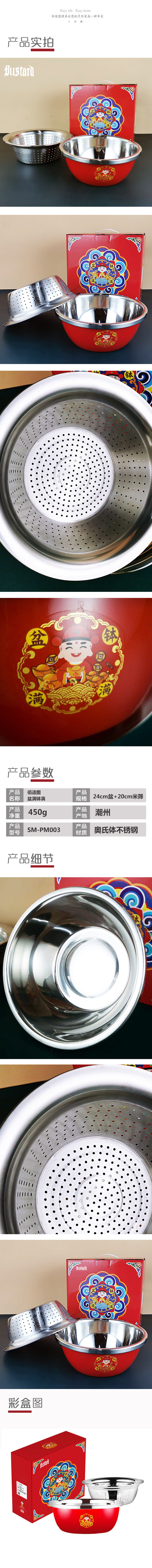 佰适图Bustard 盆满钵满 厨用杂件 SM-PM003(单位:套)红色 中式米筛三件套