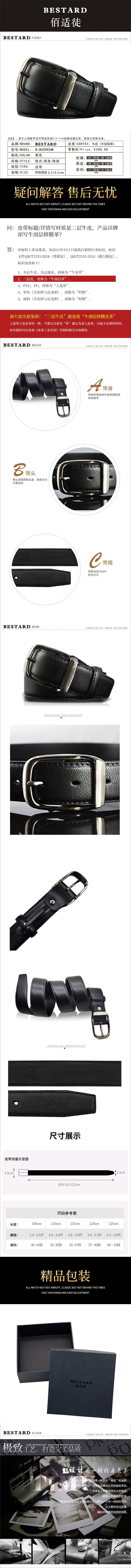 佰适徒 Bestard 针扣 皮带 B-ZK200924M(单位:条)长度120cm 黑色