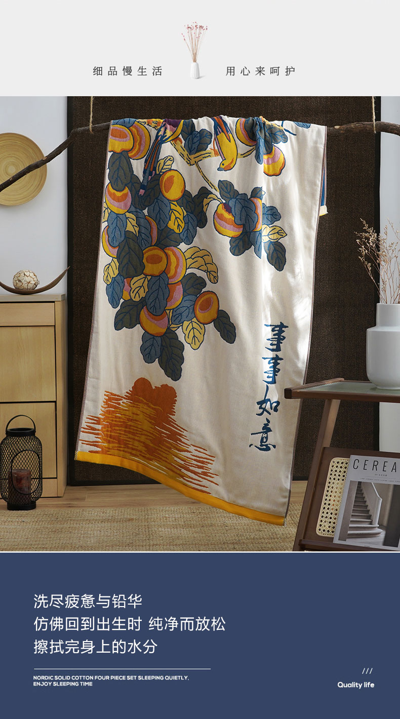帛享家纺 新疆长绒棉纱布浴巾成人家用纯棉吸水速干男女情侣款毛巾 SKBH-1030 佛莲(单位:条) 佛莲