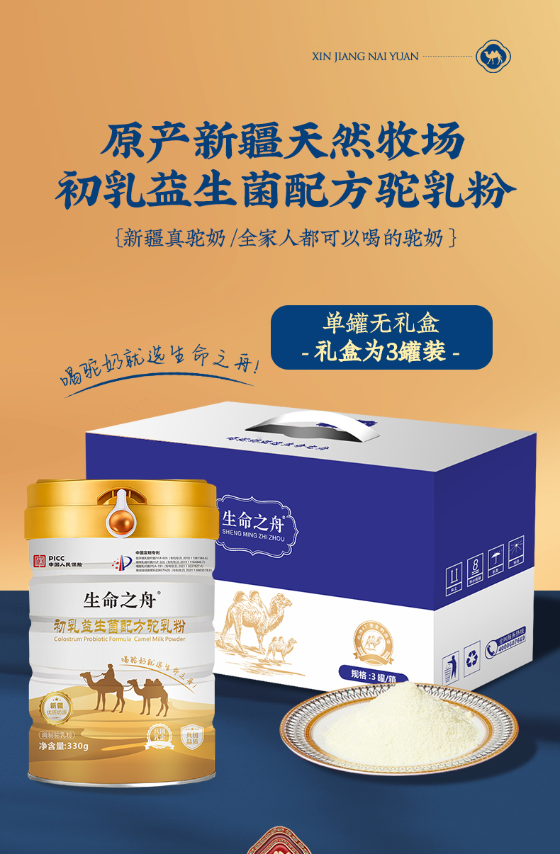 正宗新疆源产生命之舟初乳益生菌配方驼乳粉儿童青少年成人骆驼奶粉中老年营养早餐乳粉【3罐+礼盒】 3罐+礼盒+折页 3罐+礼盒+折页