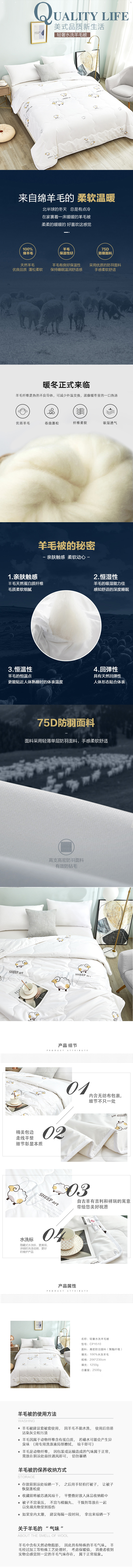 洁丽雅 轻奢水洗羊毛被200*230cm重量2.5kg(单位:床) 白色