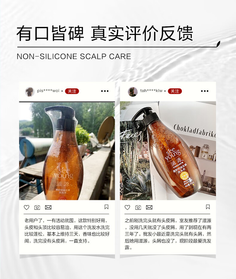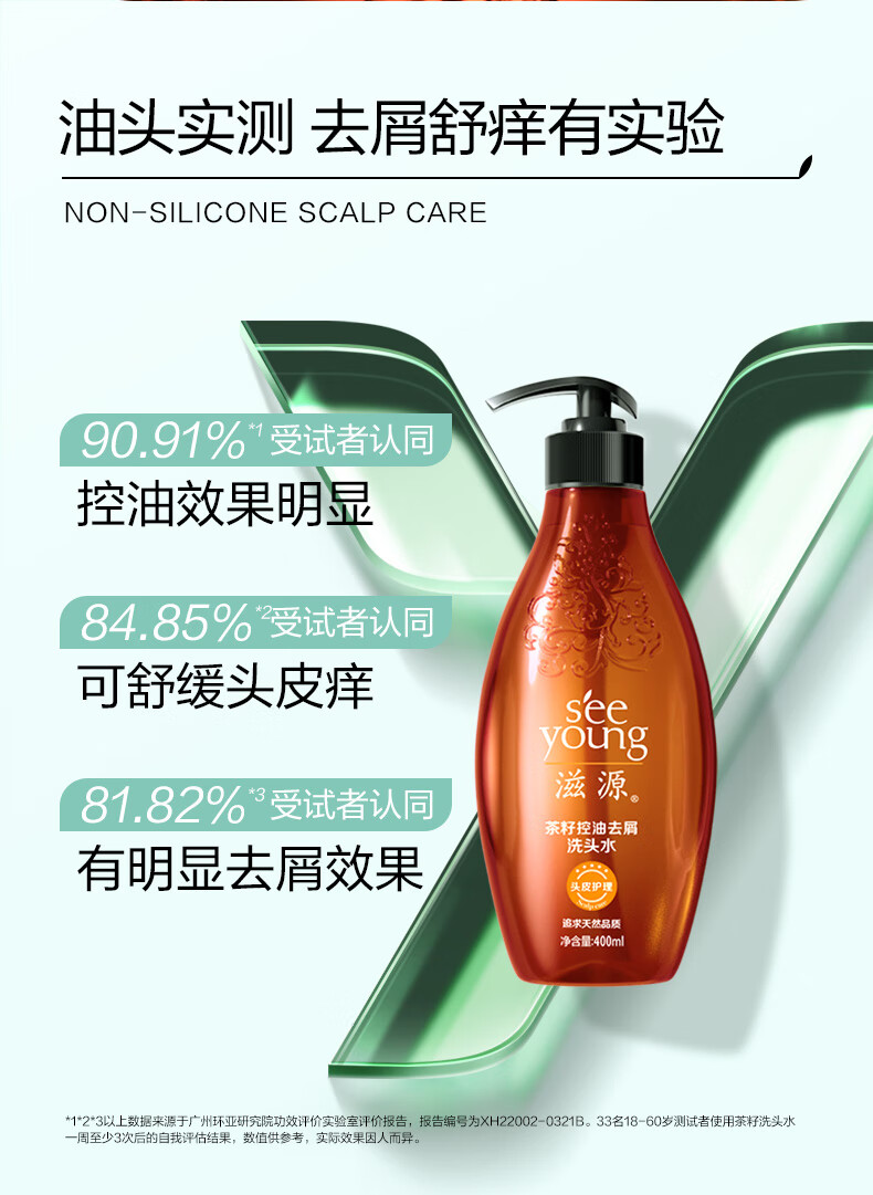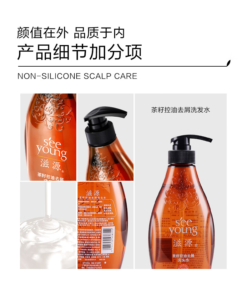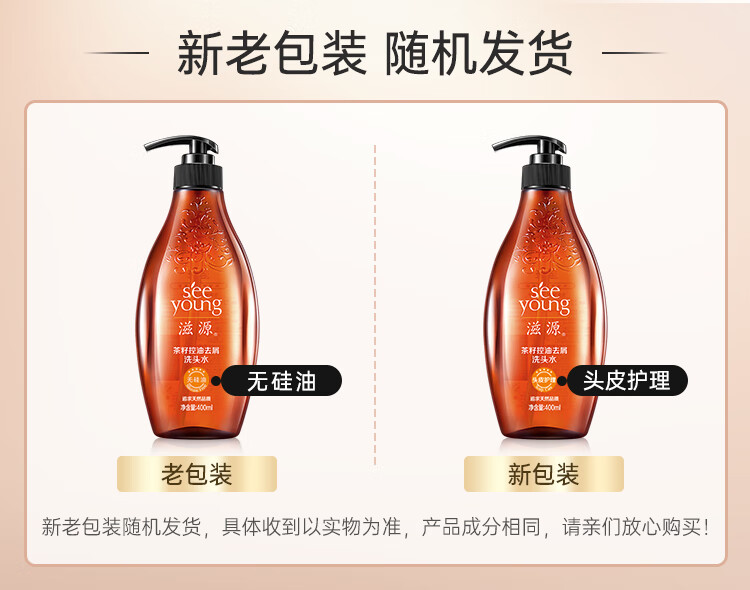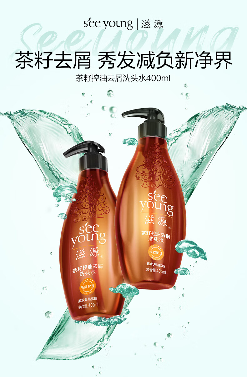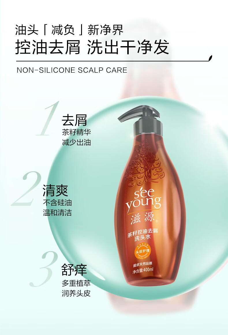 滋源(seeyoung)去屑洗发水无硅油茶籽控油止痒洗发露清爽轻盈洗头膏男女士400ml(单位:瓶) 褐色