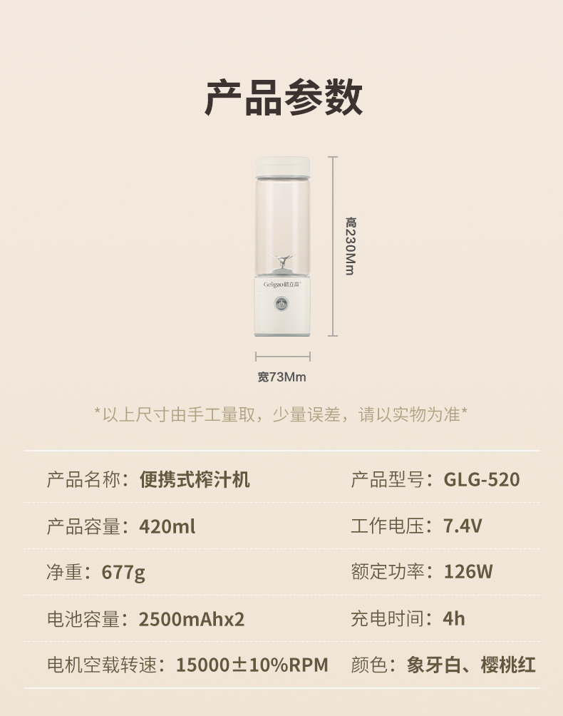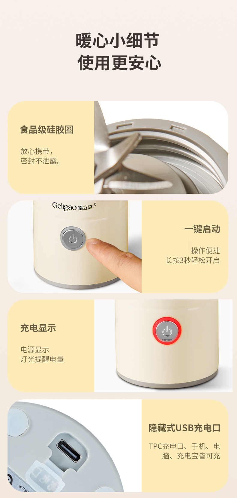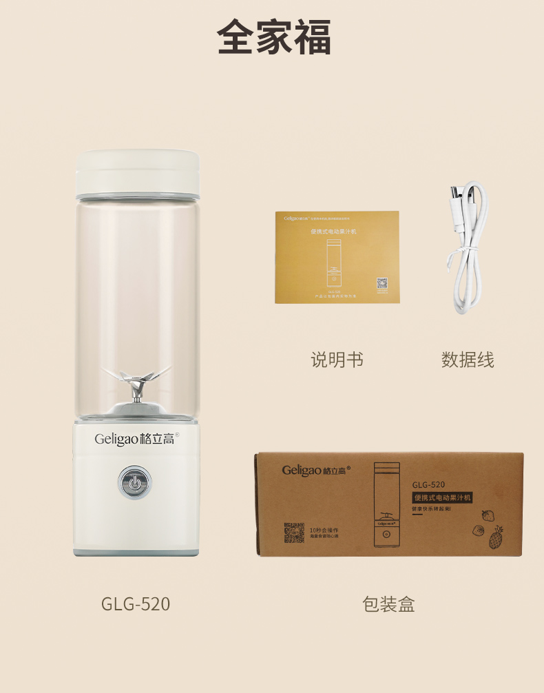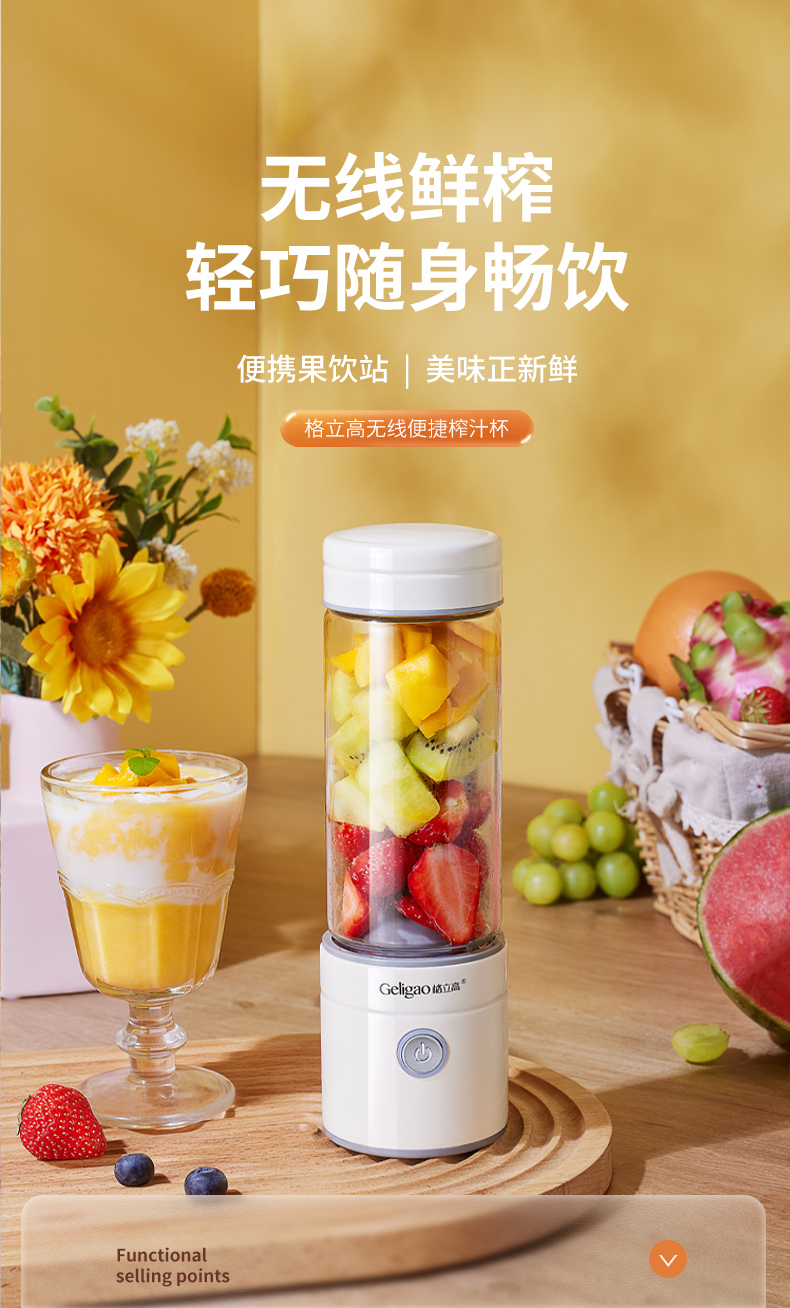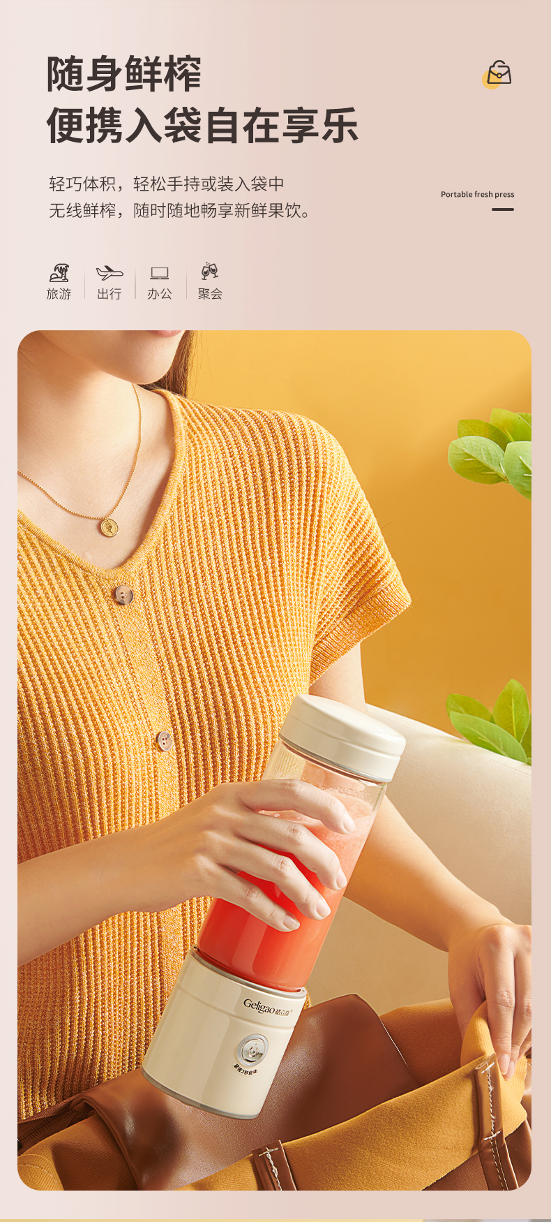 格立高GLG-520小型便携式电动迷你水果汁机家用多功能打汁机榨汁杯0.42L(单位:台) 象牙白