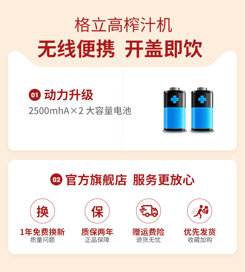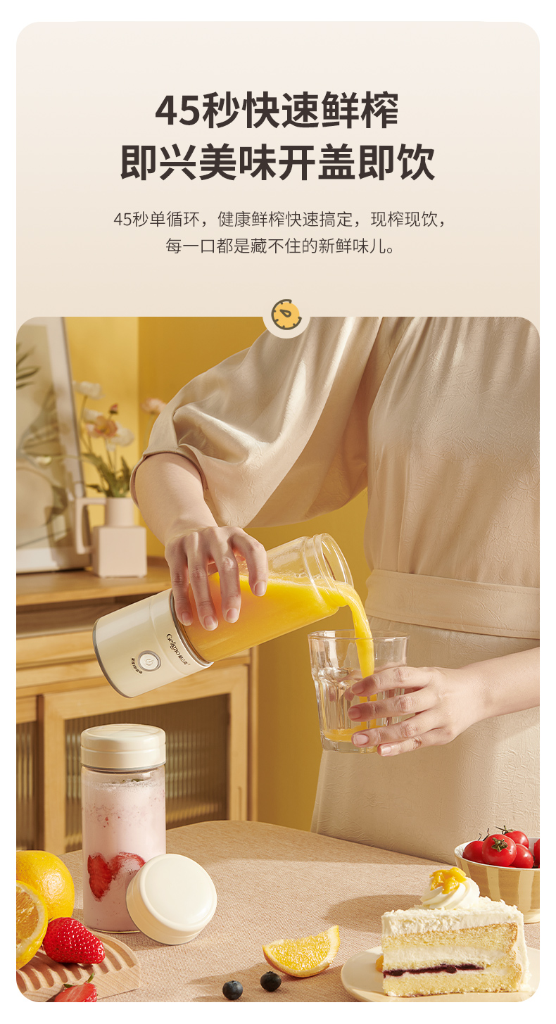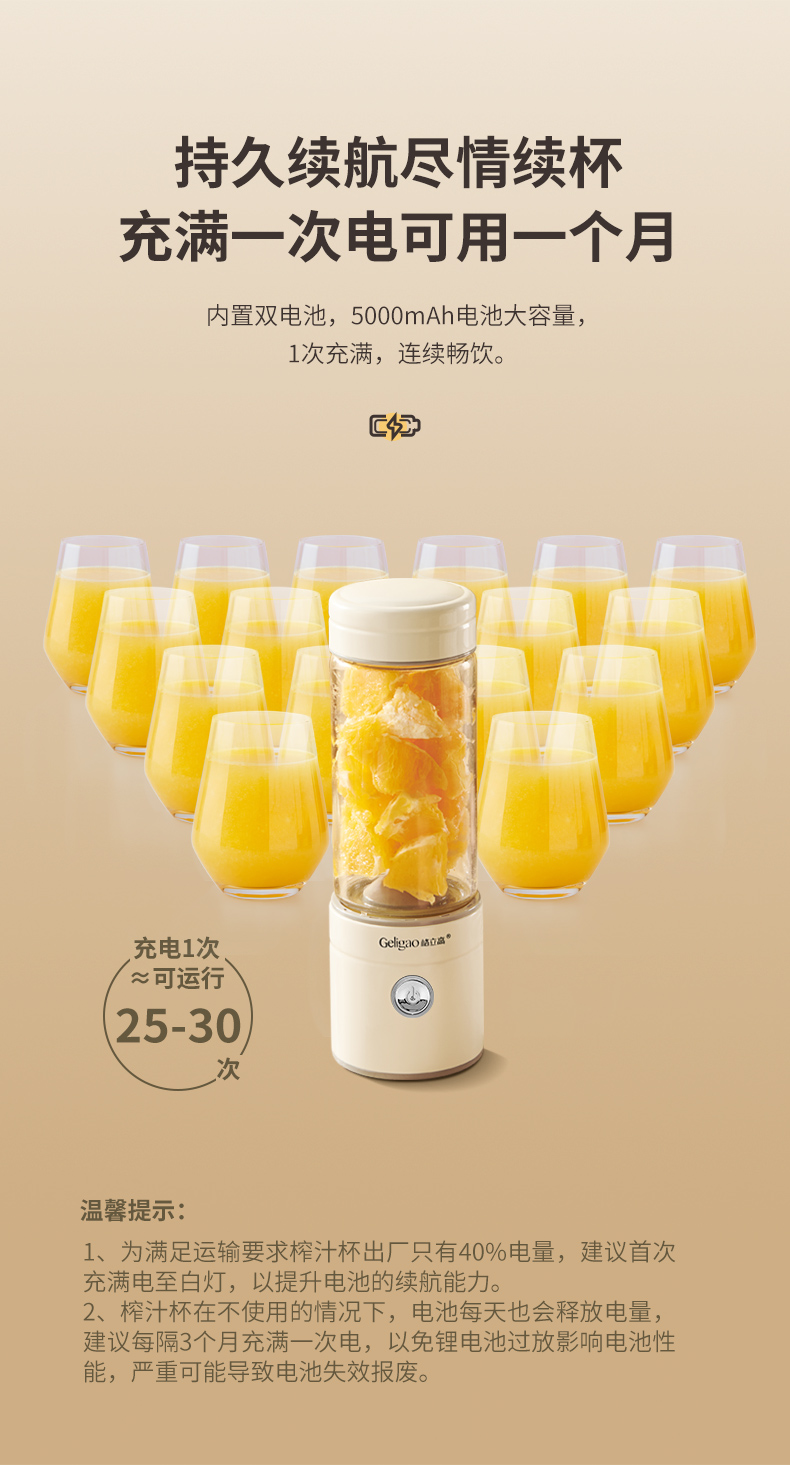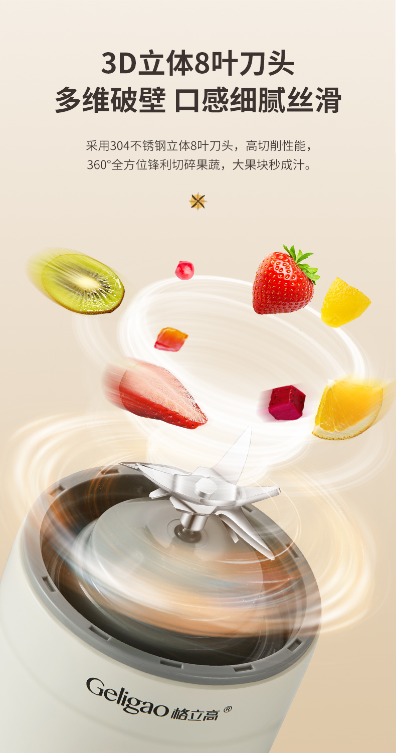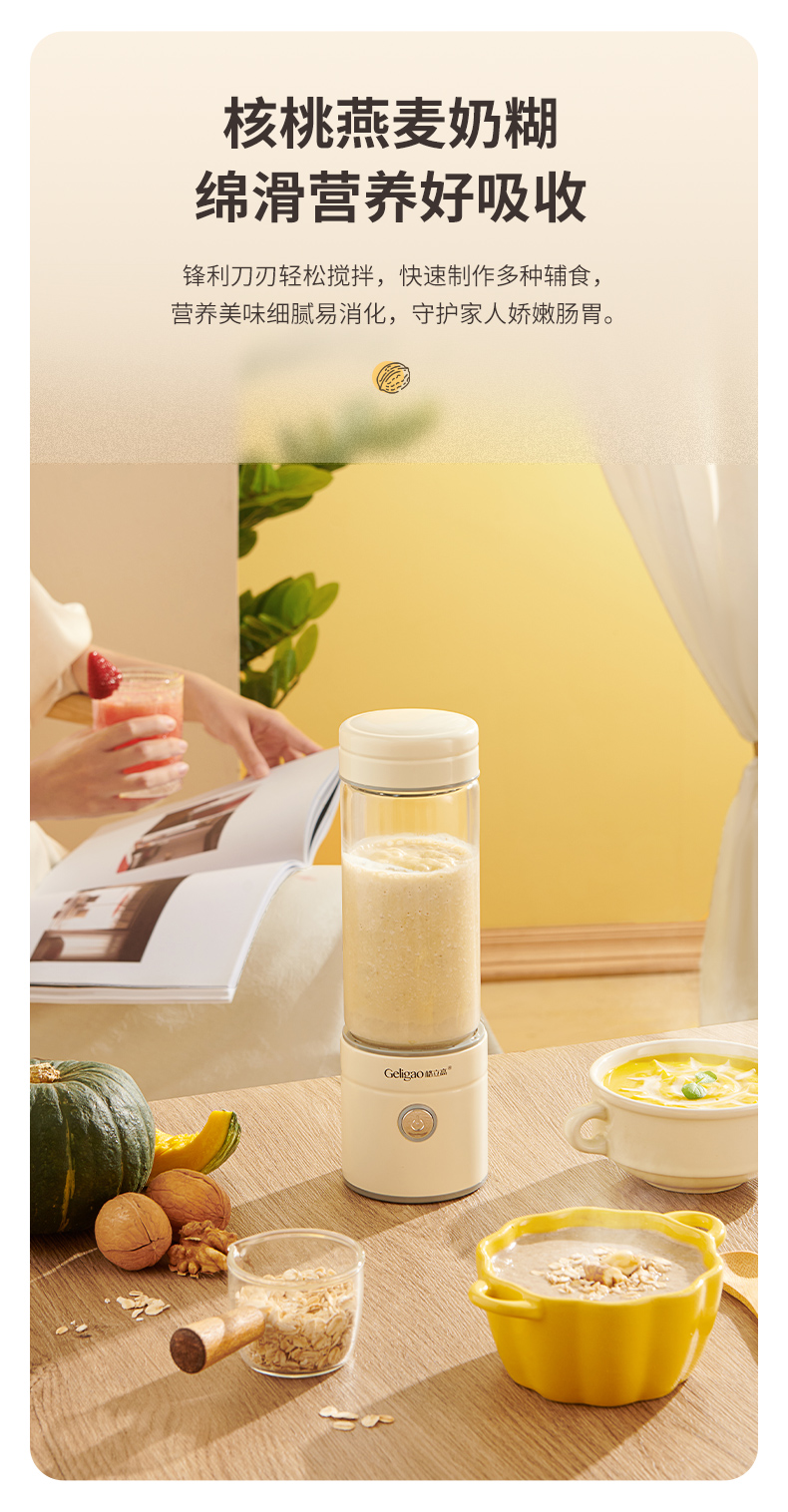 格立高GLG-520小型便携式电动迷你水果汁机家用多功能打汁机榨汁杯0.42L(单位:台) 象牙白