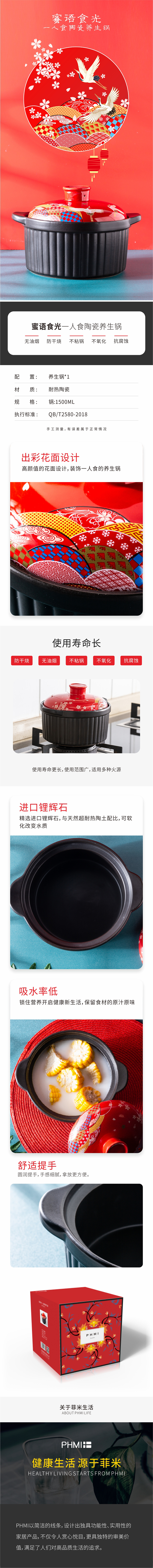 菲米生活PHMI 汤锅 蜜语食光 一人食陶瓷养生锅 FM-YS2111(单位:个) 蜜语食光 一人食陶瓷养生锅