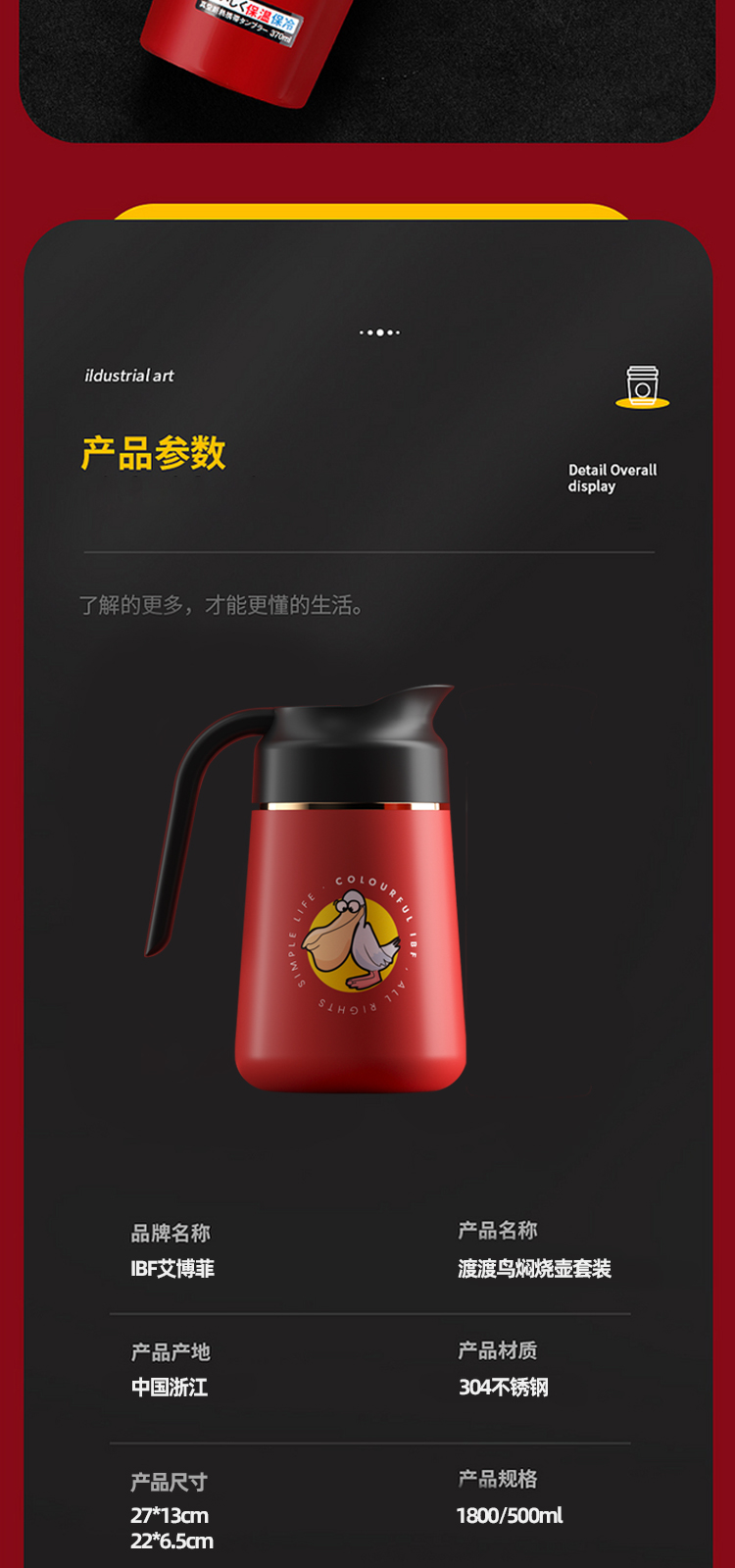 IBF艾博菲-渡渡鸟焖茶壶IBF2216H 1800ML 只 红色